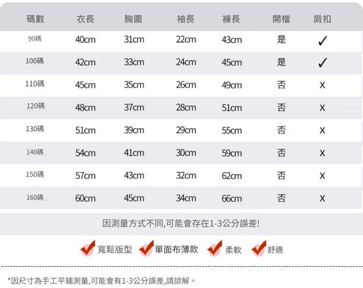 90cm、100cm、110cm(無肩釦)、120cm(無肩釦)、130cm(無肩釦)、140cm(無肩釦)、150cm(無肩釦)、160cm(無肩釦)