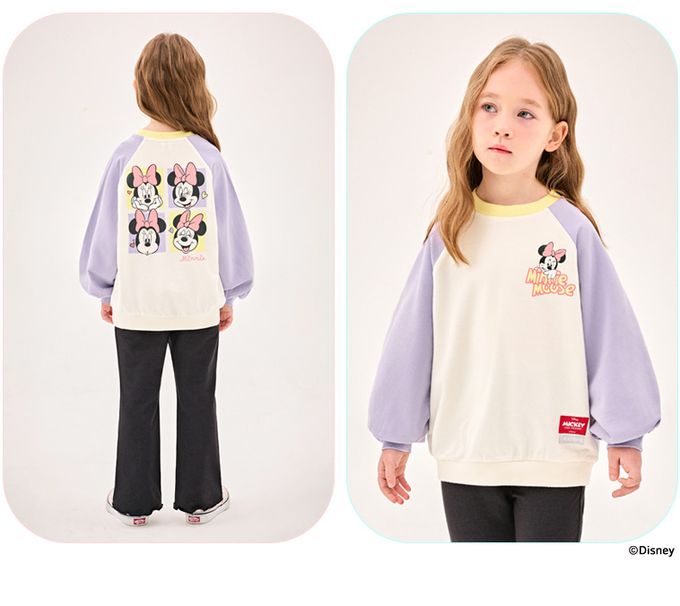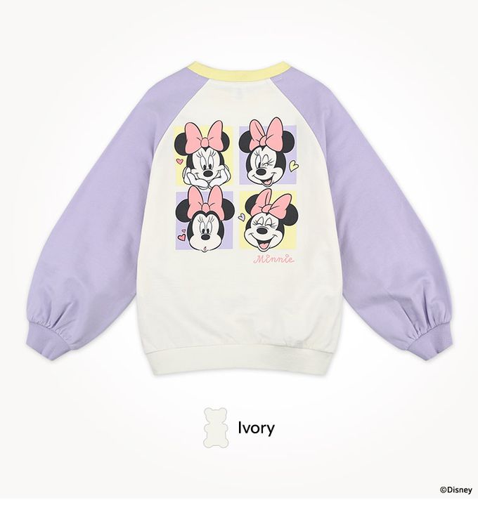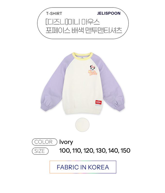 韓國 Jelispoon - (聯名款)卡通四格圖印長袖大學T-米白X淡紫