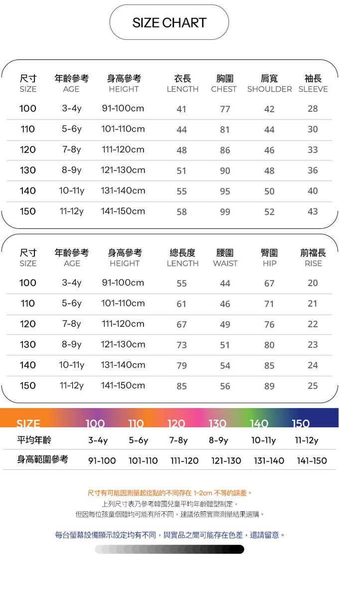 尺寸從90-150公分都有,大小孩和小寶貝都可以穿!