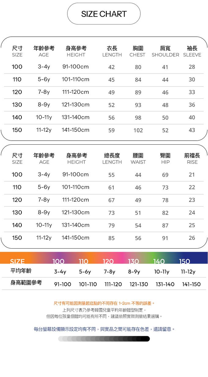 尺寸從90-150公分都有,大小孩和小寶貝都可以穿!