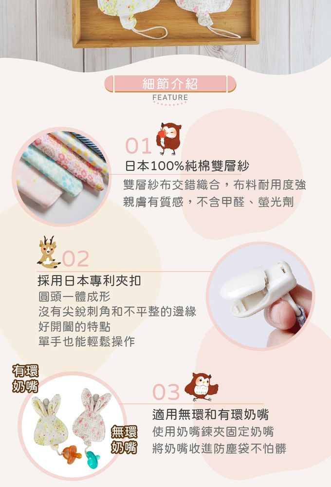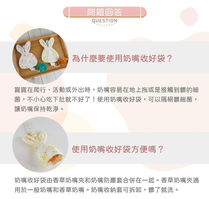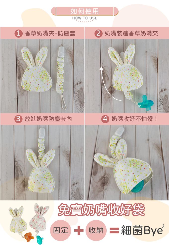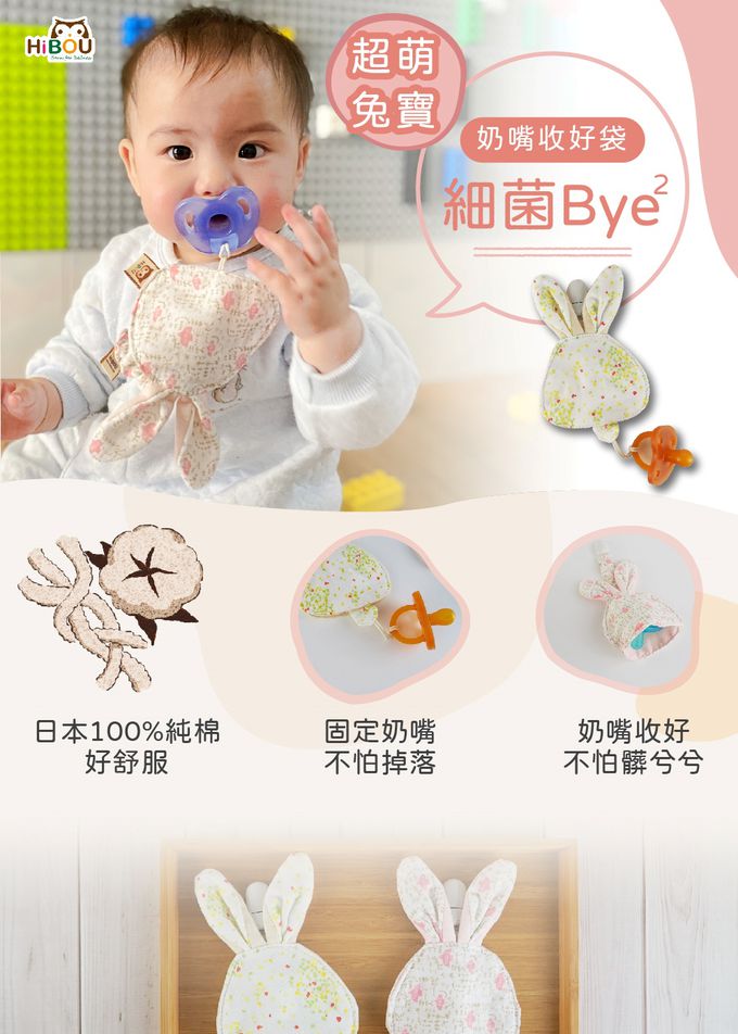 品名:【超萌!外出攜帶,奶嘴不落地】日本純棉印花兔寶奶嘴收好袋2件組