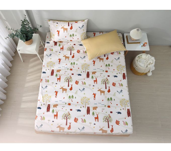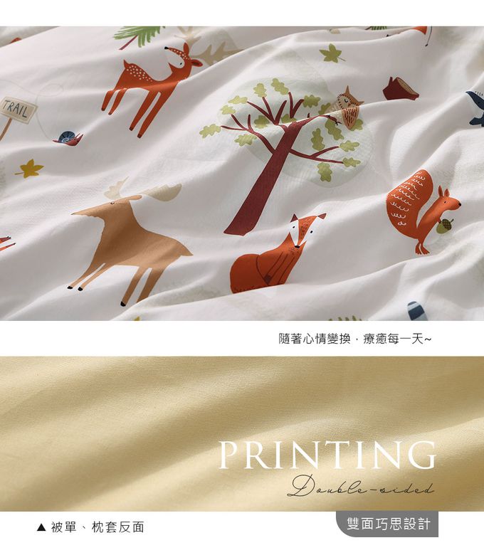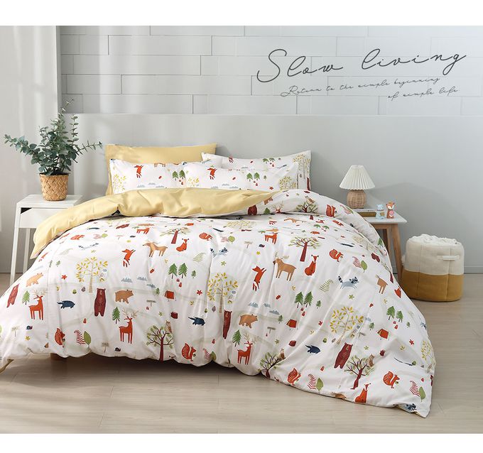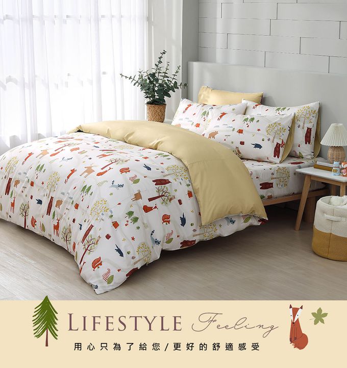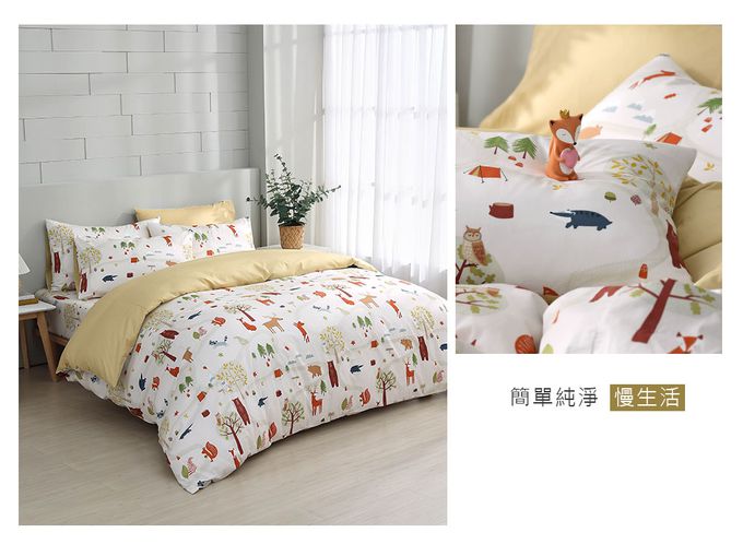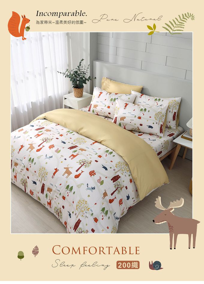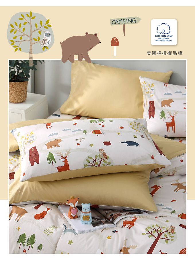 雙人床包枕套組 100%美國棉 精梳棉-呼嚕森林-米