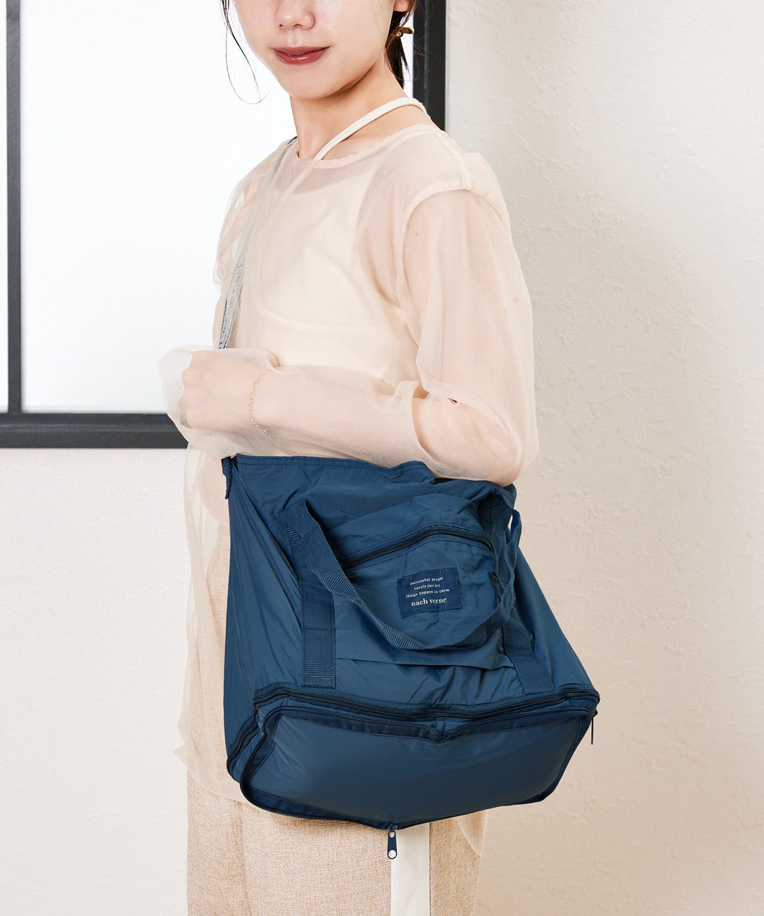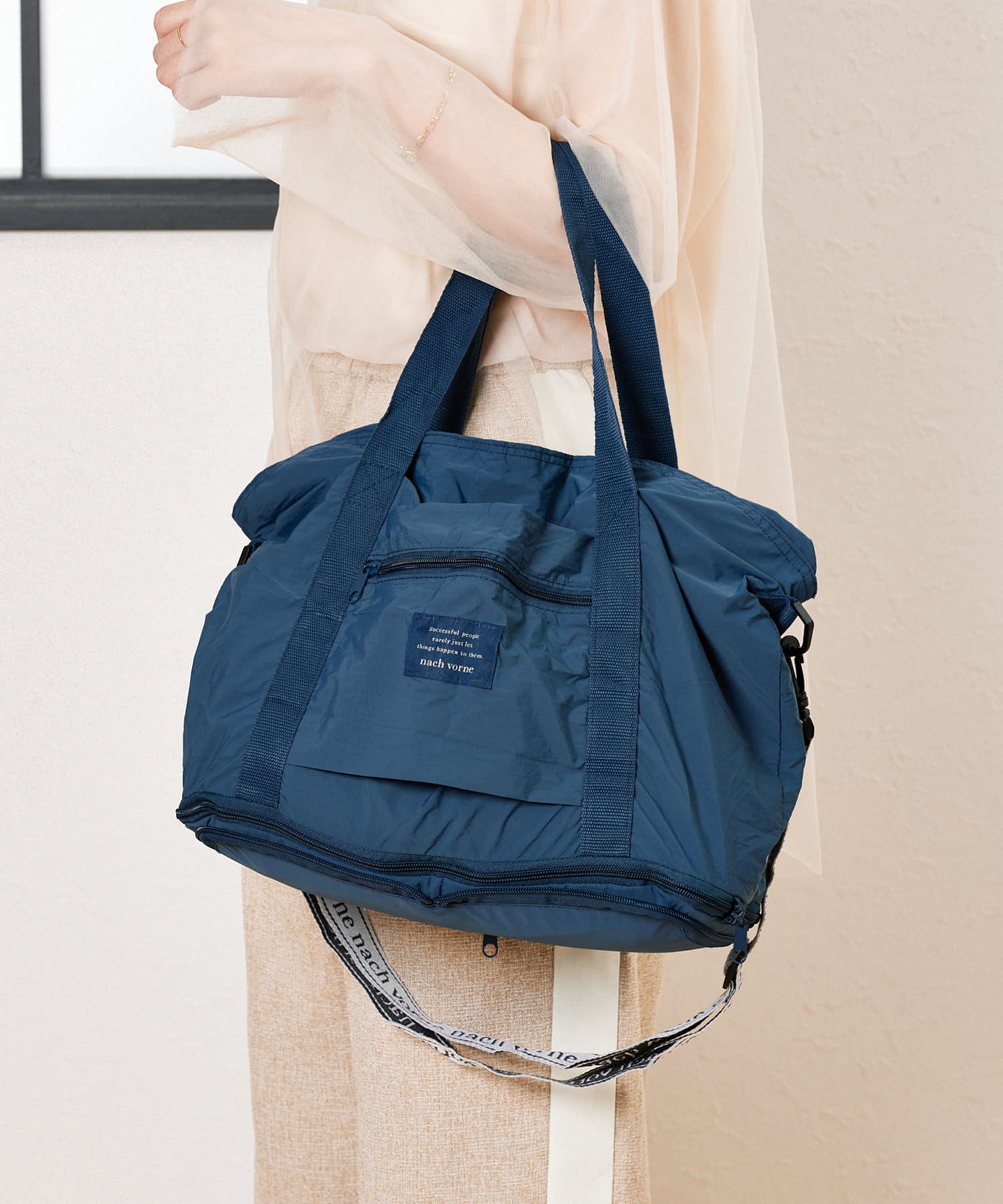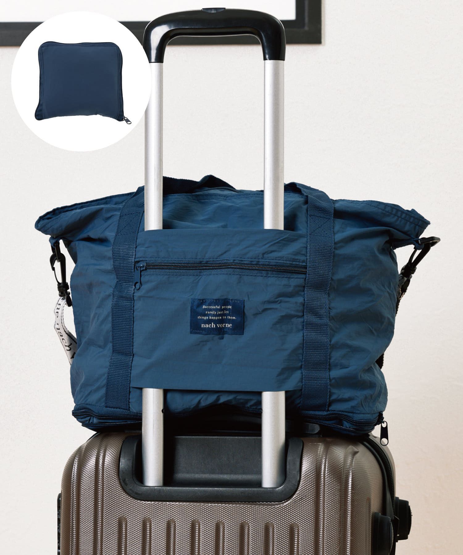日本 3COINS - [旅行好物]3Way加長大容量摺疊收納包-可掛行李箱-海軍藍 (30 x45x19.5cm)