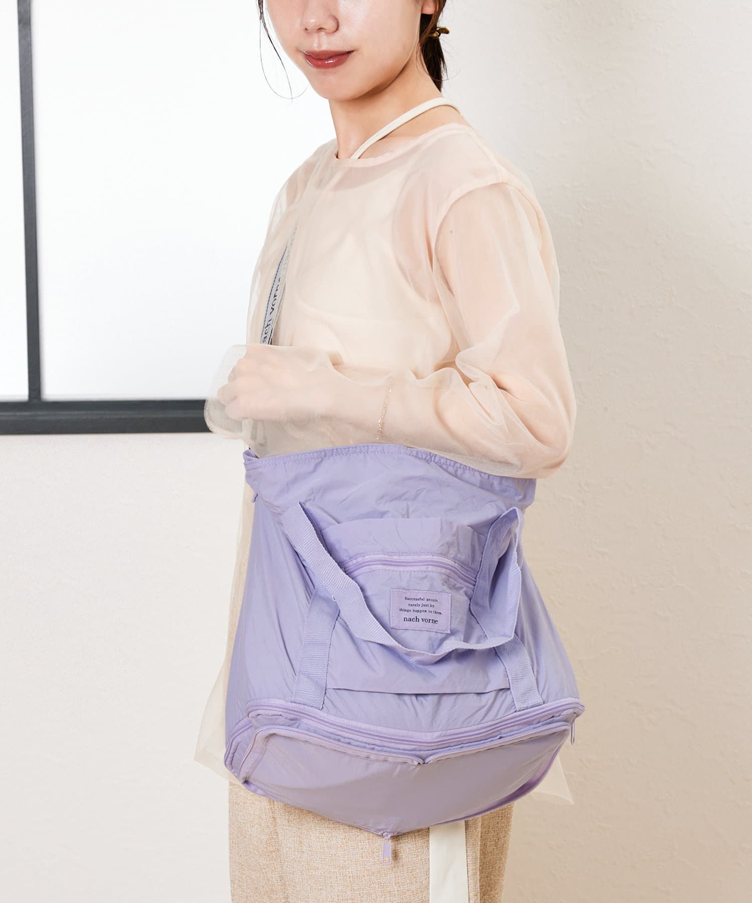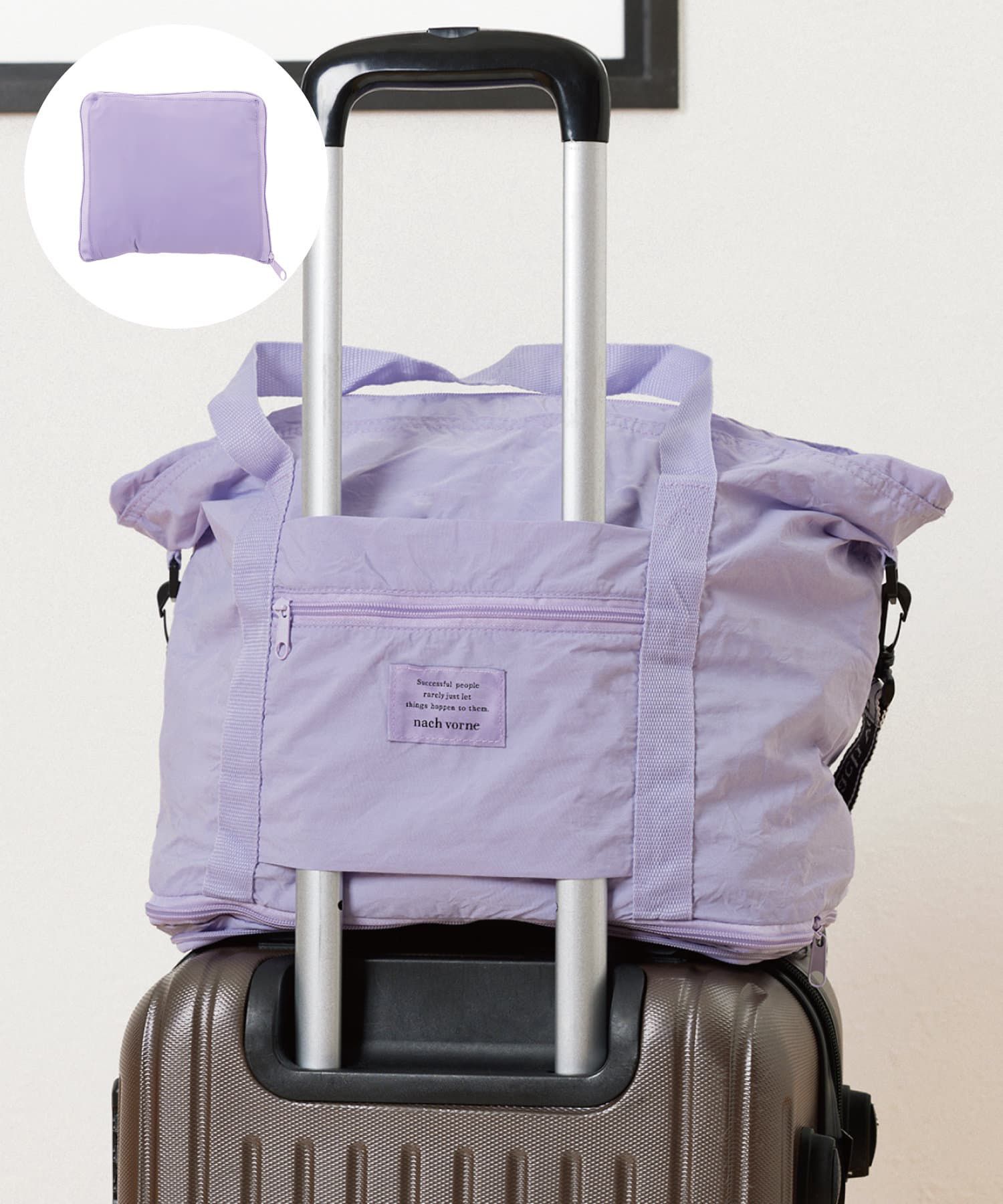 日本 3COINS - [旅行好物]3Way加長大容量摺疊收納包-可掛行李箱-薰衣草 (30 x45x19.5cm)