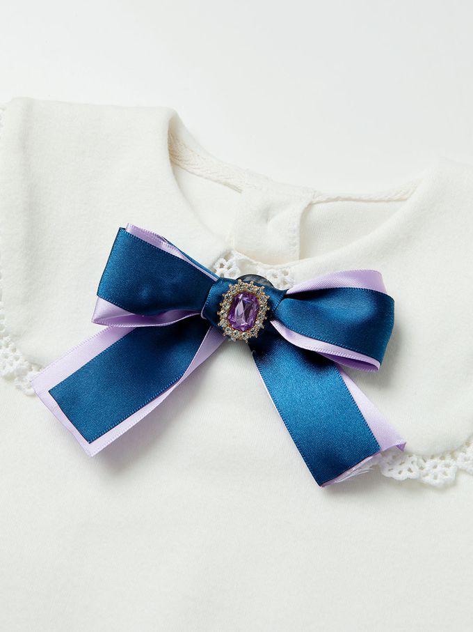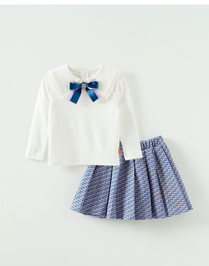 • 品名:緞帶裝飾上衣花紋打褶裙套裝