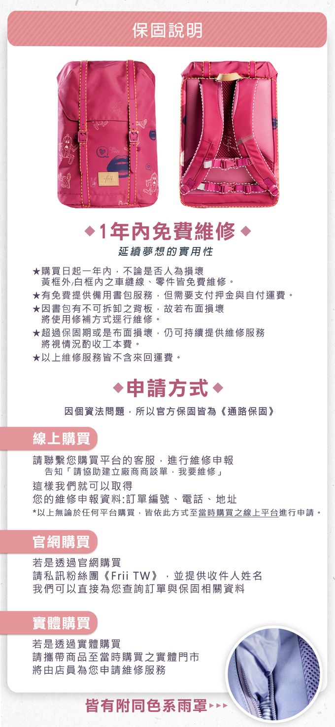 使用方式:雙肩背負,詳細使用方式洽Line:@frii詢問