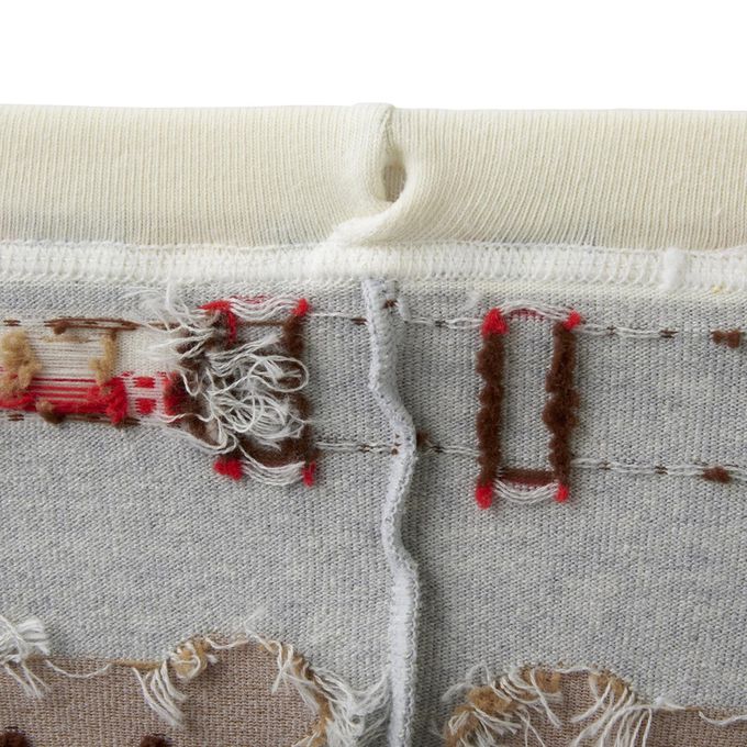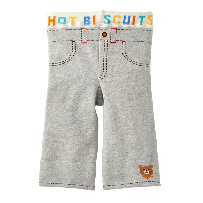 8分褲(褲腳反折後變7分褲)。整個腰部都是鬆緊帶的設計,並配有可調整鬆緊帶的孔。