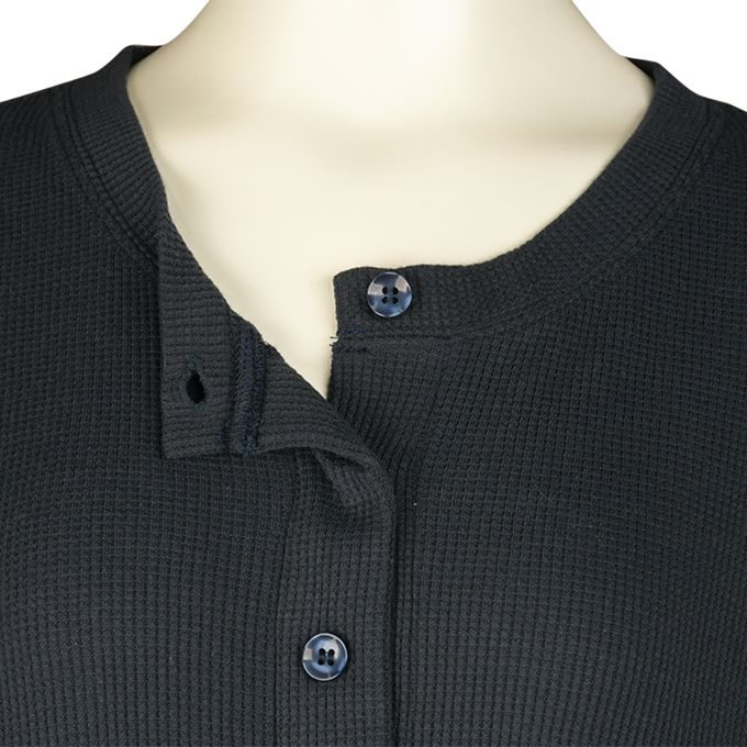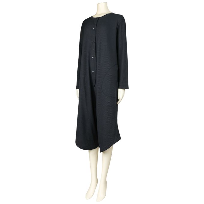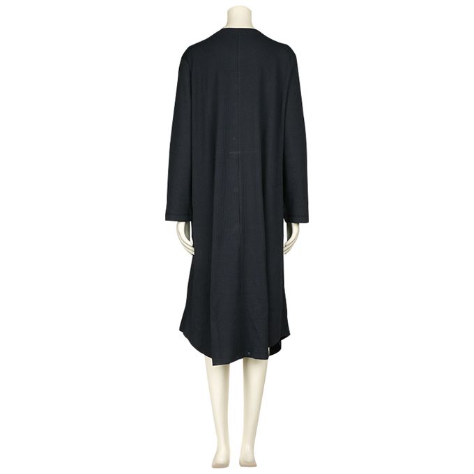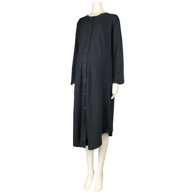 長袖洋裝-華夫格 防止裙擺上翻 設計-深藍色 (M~L)