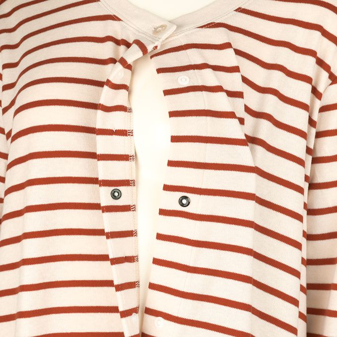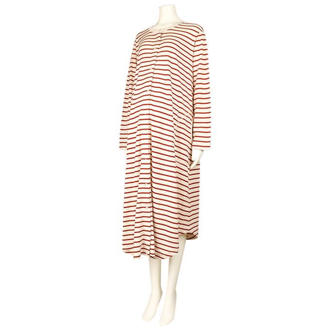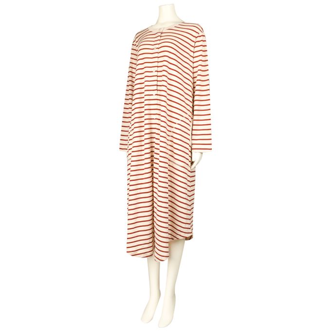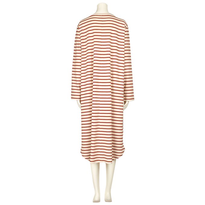 長袖洋裝-橫紋 防止裙擺上翻設計-橘色 (M~L)