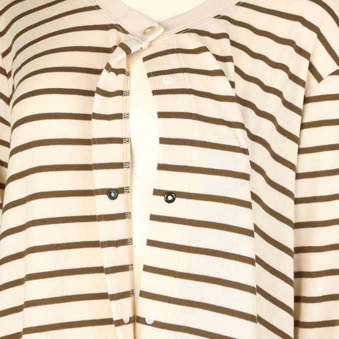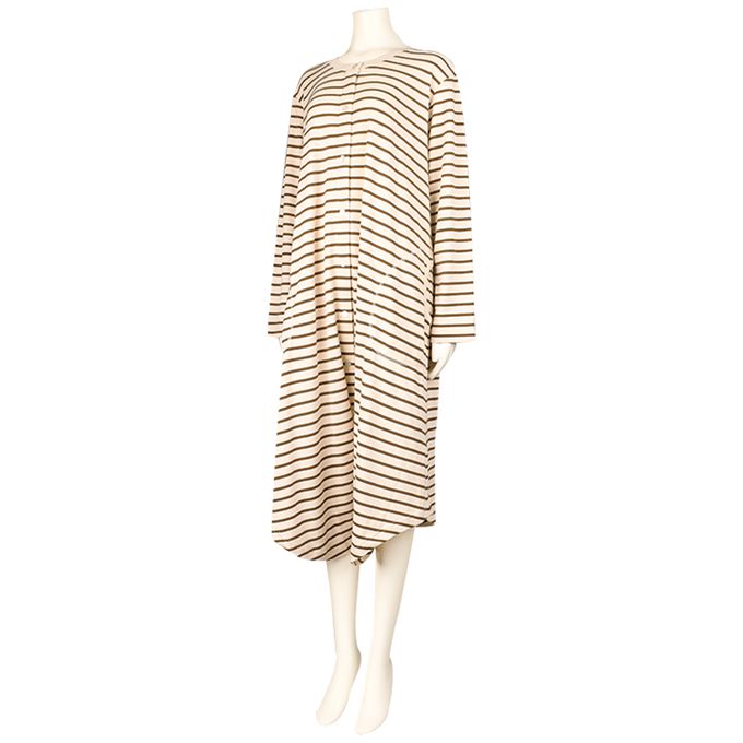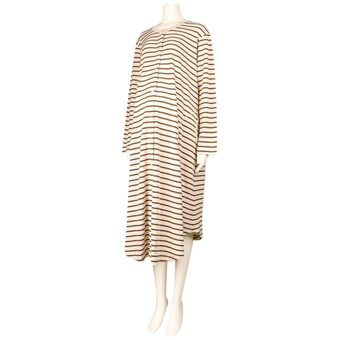 長袖洋裝-橫紋 防止裙擺上翻設計-咖啡色 (M~L)