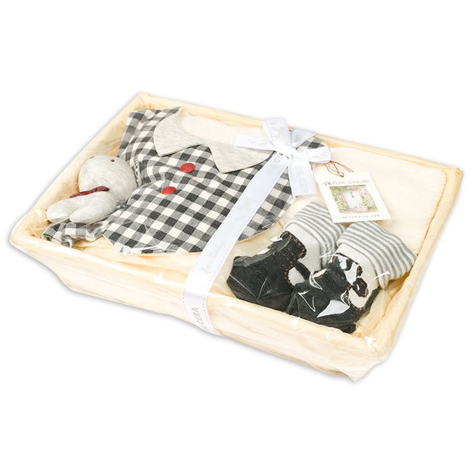 akachan honpo - 新生兒禮盒-靴子造型襪組 (【拼布圍兜】60~70cm【哺乳圍兜】50~70cm)-日本製