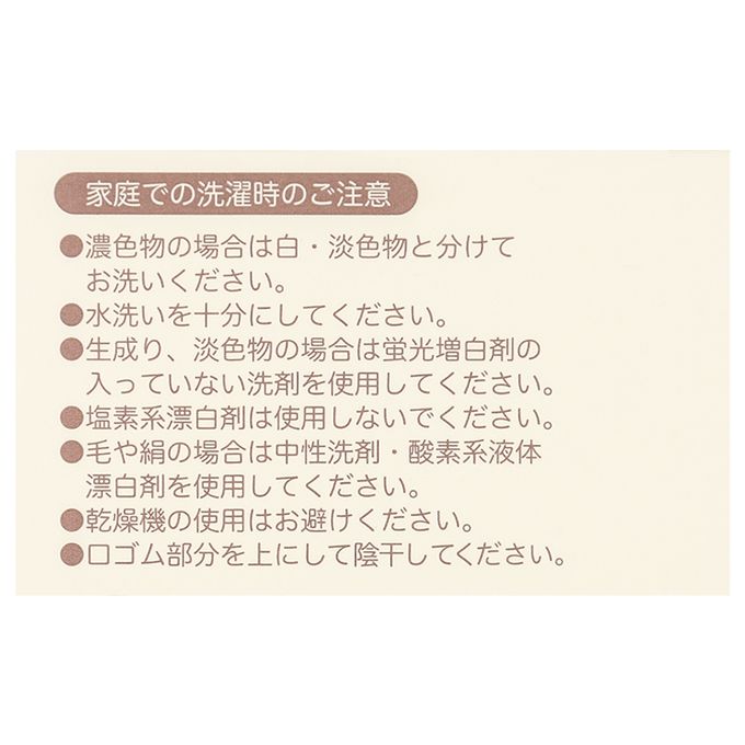 注意事項:●標示內容遵照台灣法規之規定。●請確實用清水清洗。●請使用不含螢光增白劑的洗劑。●請將襪口朝上,在陰涼處晾乾。