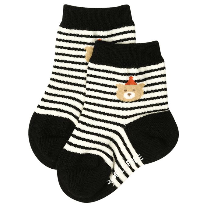 經典襪-中長版 橫紋、小熊-黑色 (9~14cm)