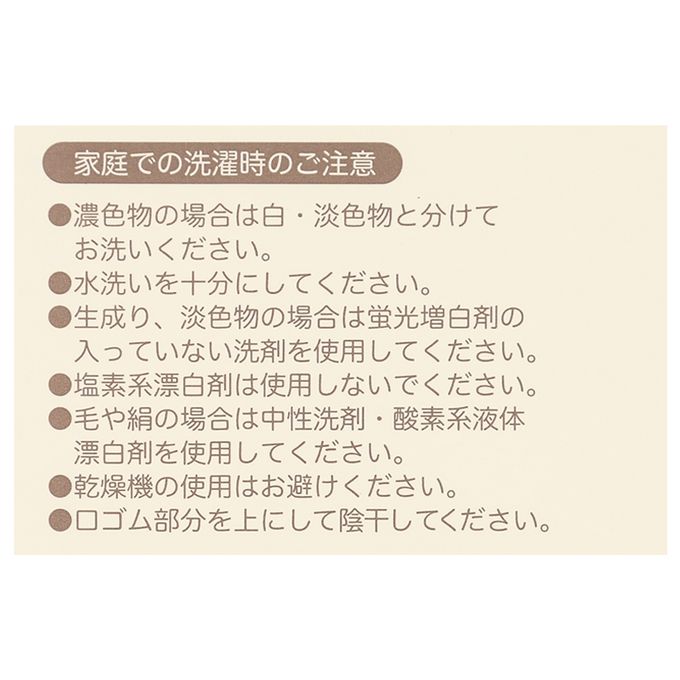 注意事項:●標示內容遵照台灣法規之規定。●請確實用清水清洗。●請使用不含螢光增白劑的洗劑。●請將襪口朝上,在陰涼處晾乾。