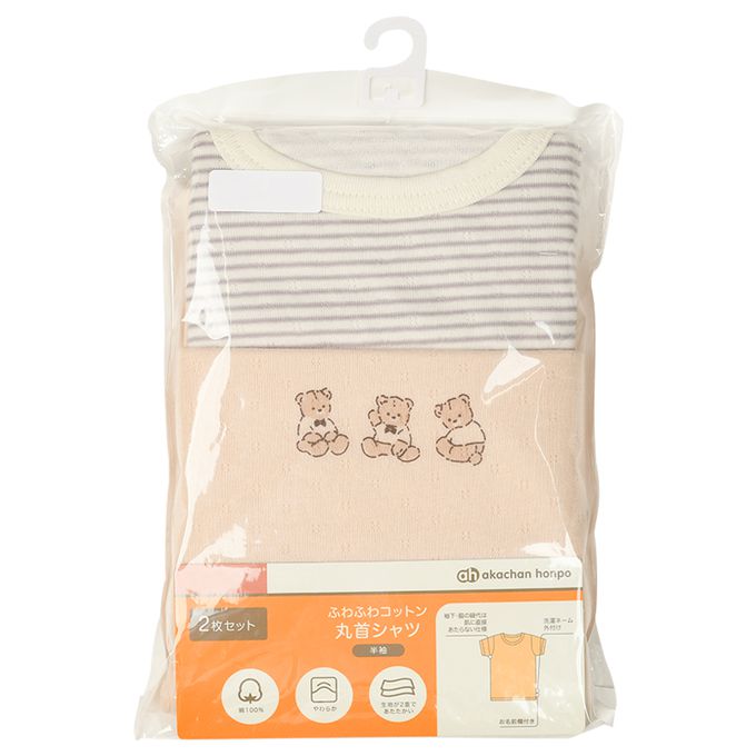 akachan honpo - 短袖圓領上衣2件組-蓬鬆棉質-原色