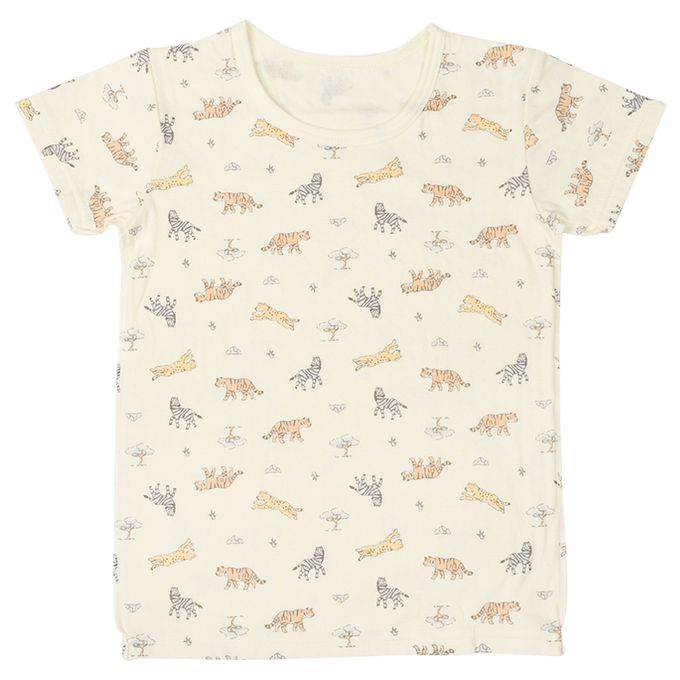 akachan honpo - 短袖圓領上衣2件組-網眼 老虎-黃色