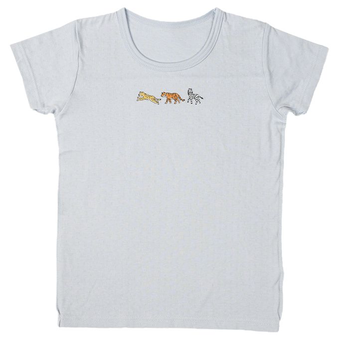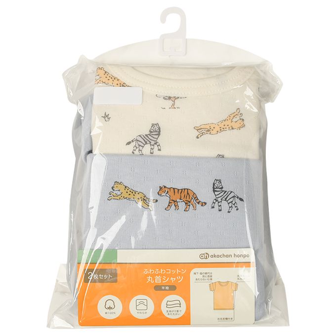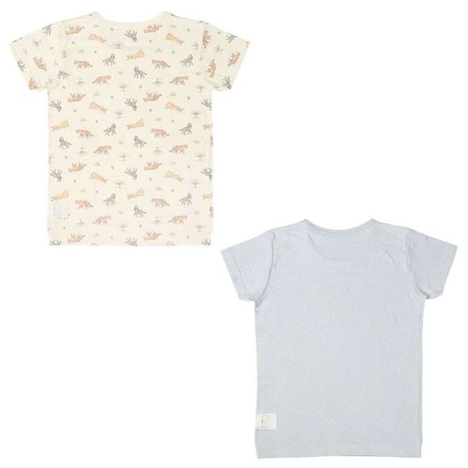 短袖圓領上衣2件組-蓬鬆棉 野生動物-淺藍色