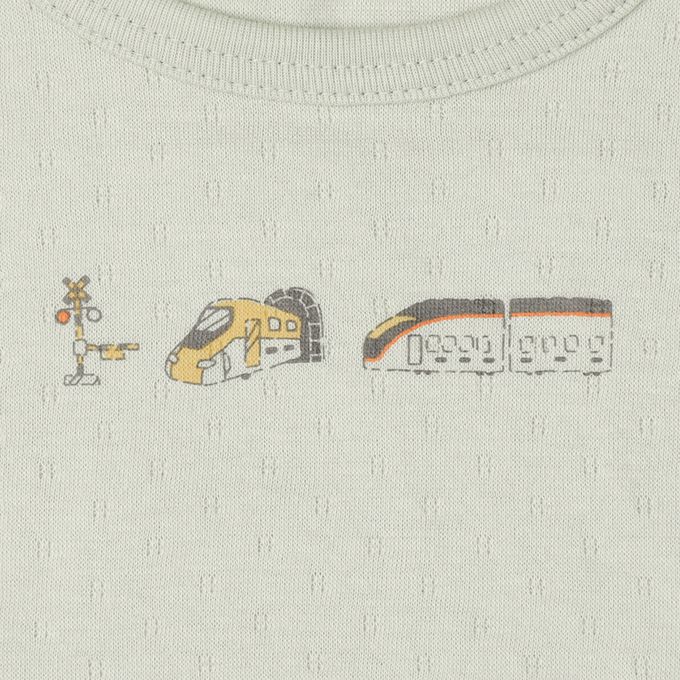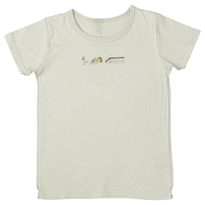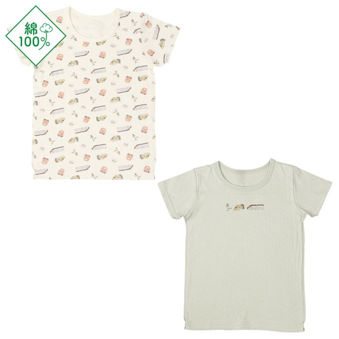 短袖圓領上衣2件組-蓬鬆棉 電車-綠色