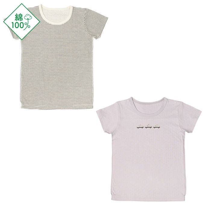 akachan honpo - 短袖圓領上衣2件組-蓬鬆棉質-原色