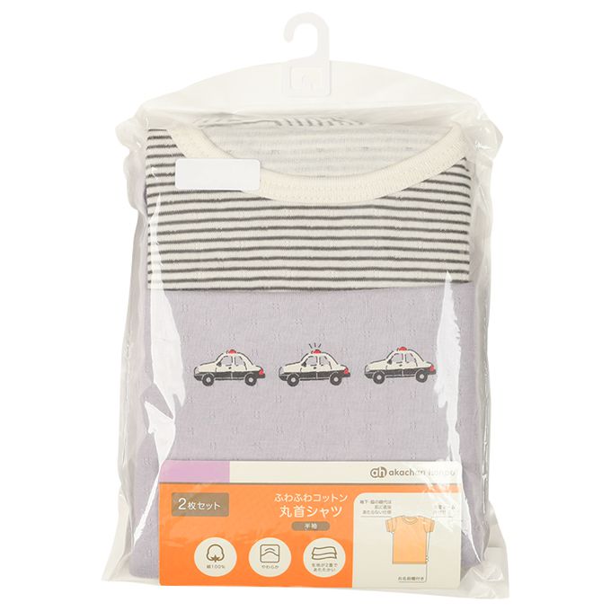 短袖圓領上衣2件組-蓬鬆棉 警車-灰色