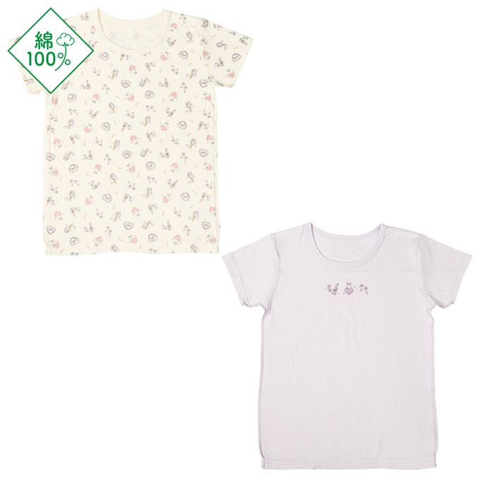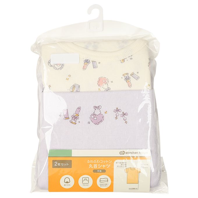 短袖圓領上衣2件組-蓬鬆棉 化妝品-紫色