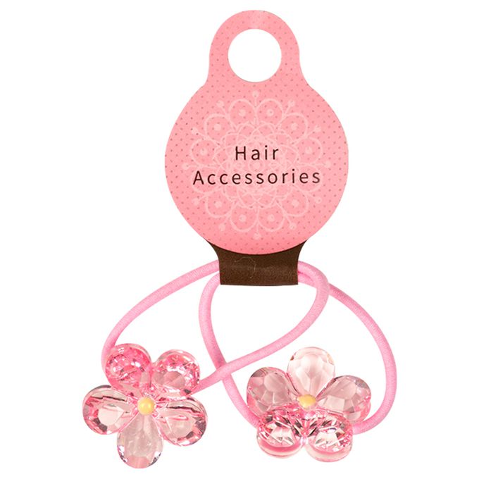 akachan honpo - 小髮圈-透明小花-粉紅色-日本製