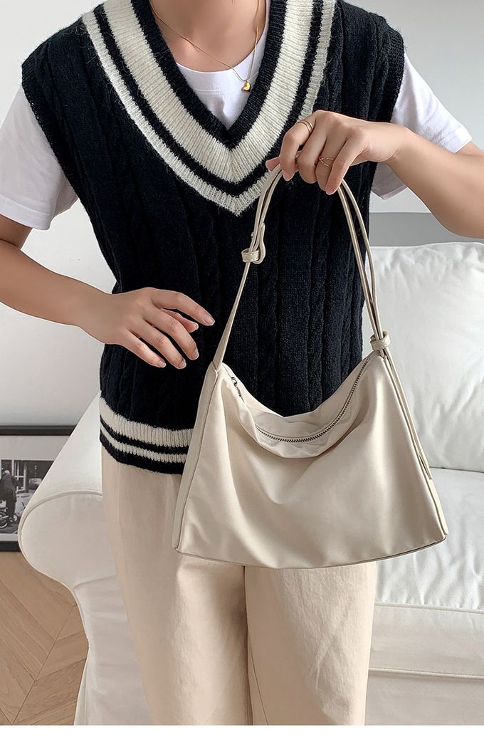 可調節百搭尼龍單肩包/腋下包/斜背包-米白