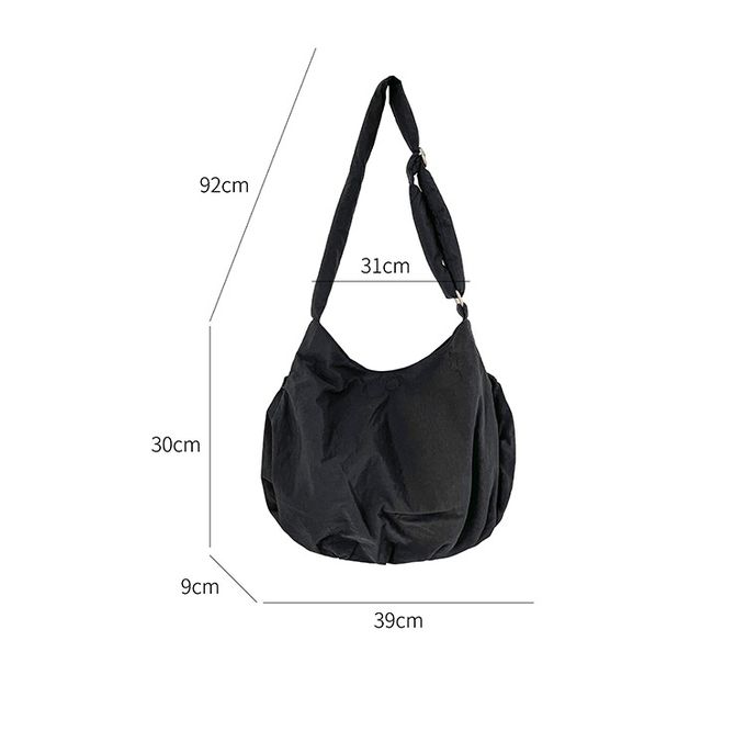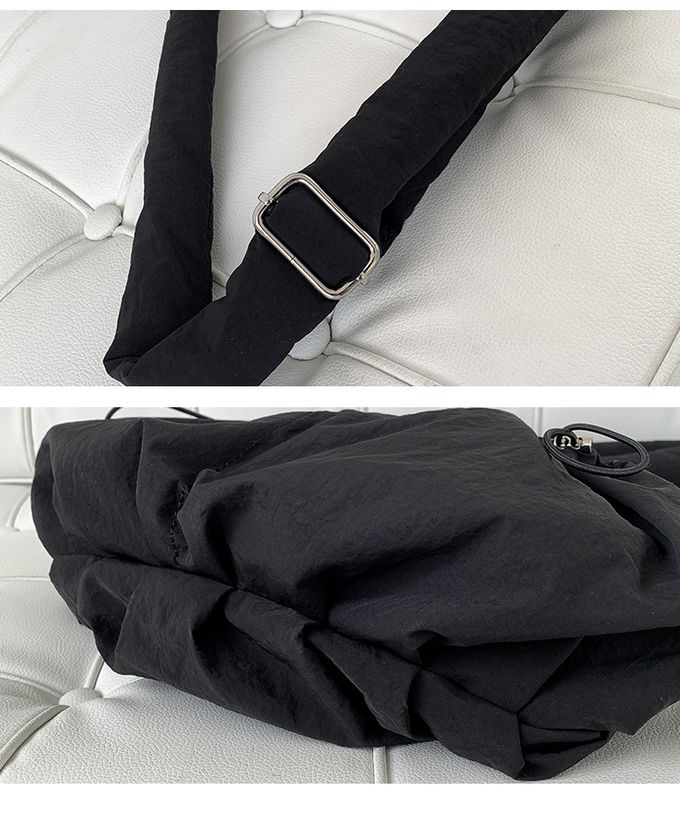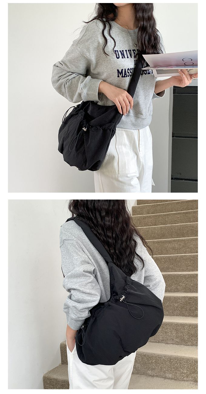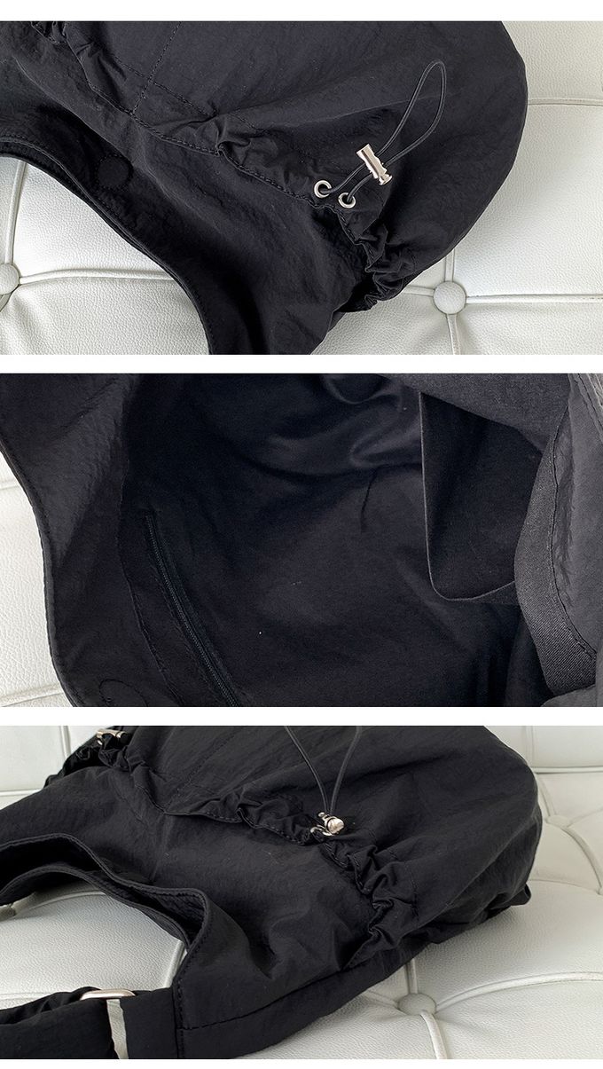 大容量抽繩口袋尼龍單肩包/斜背包-黑色