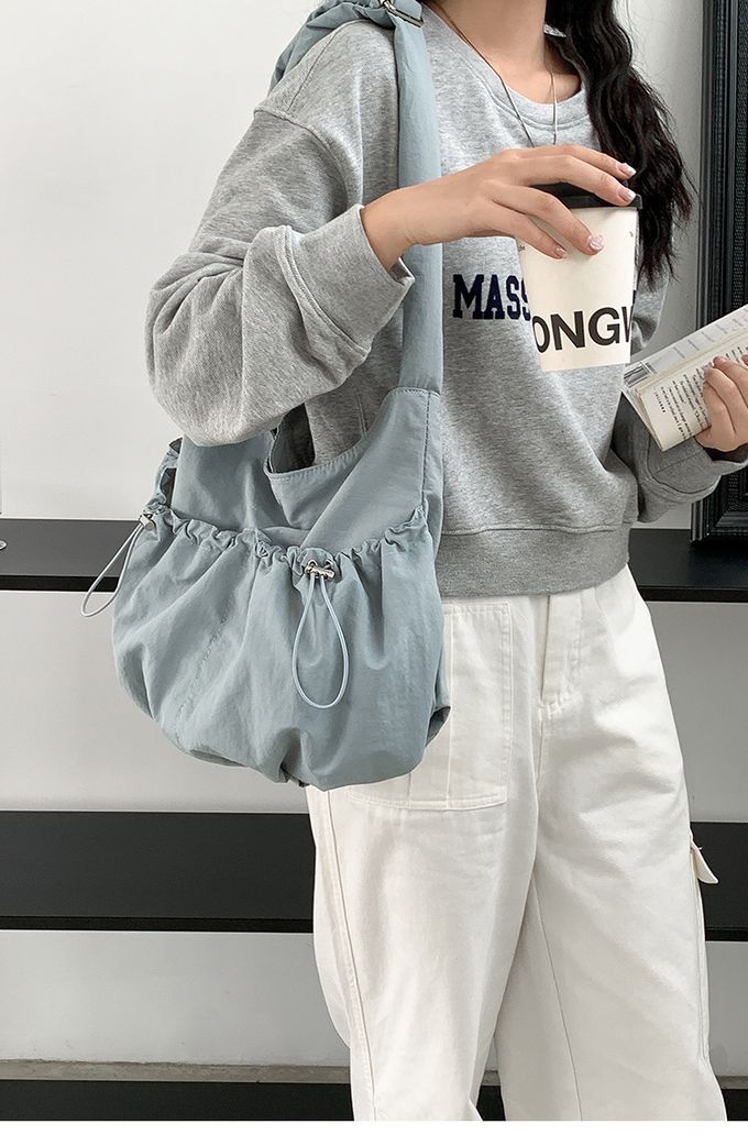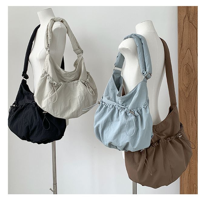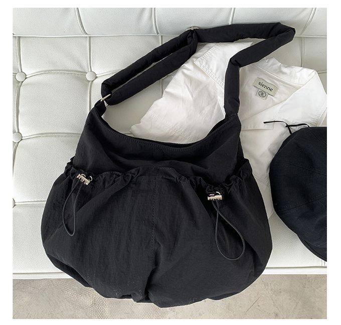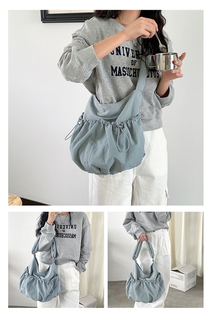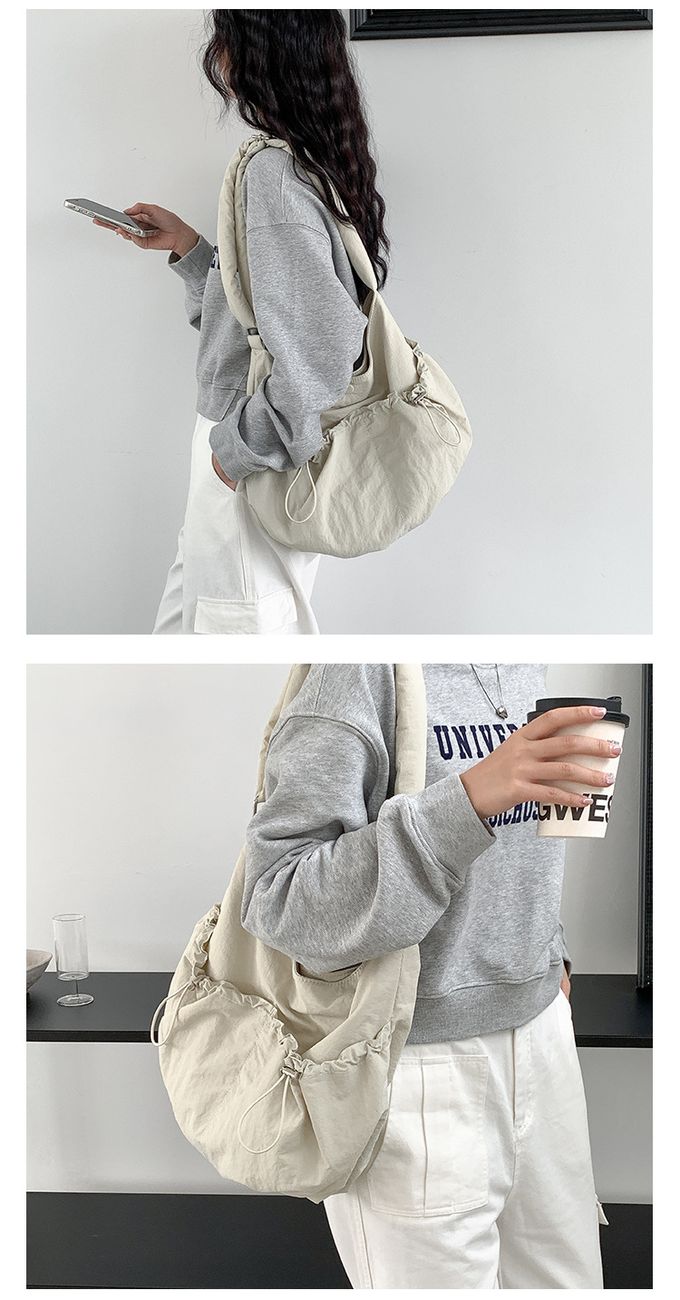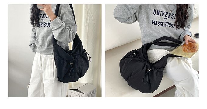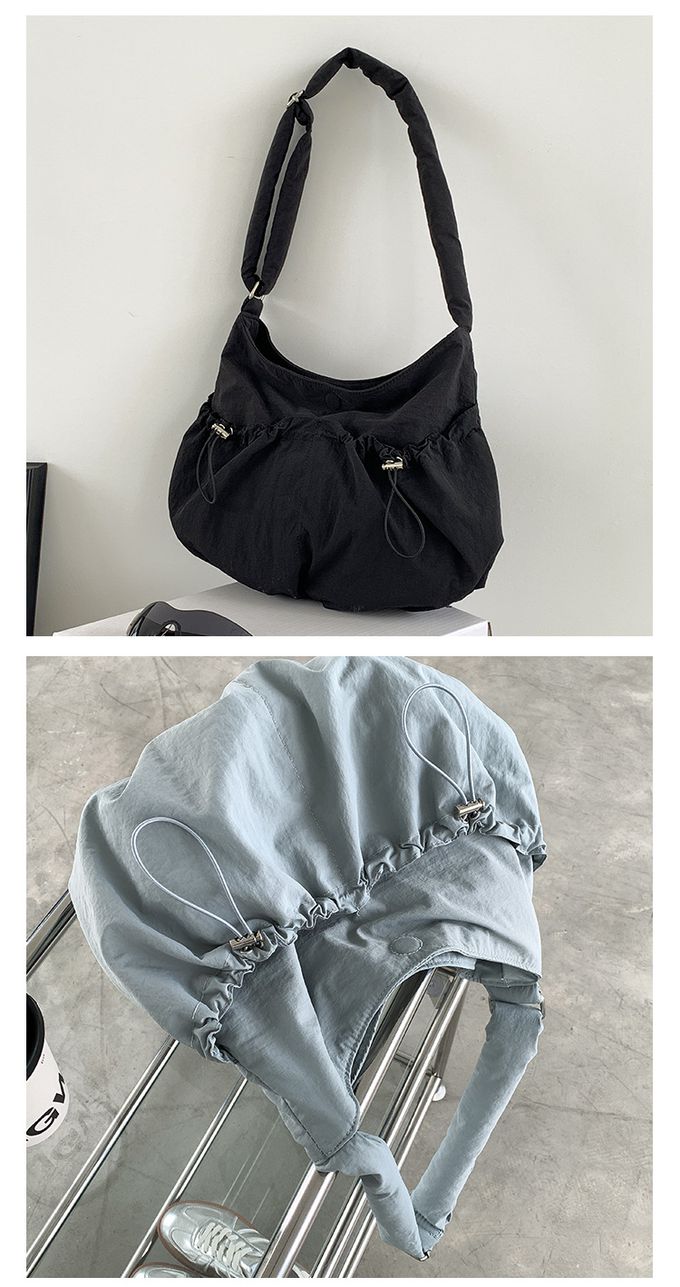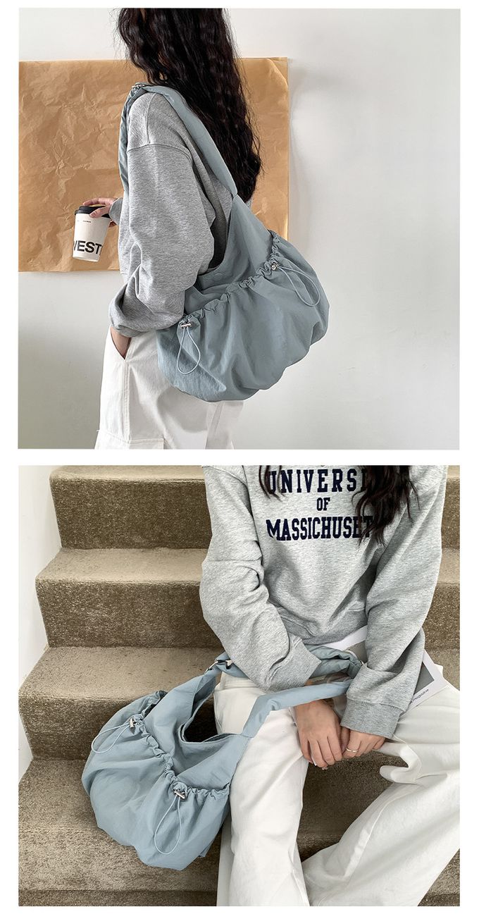 品名:大容量抽繩口袋尼龍單肩包/斜背包