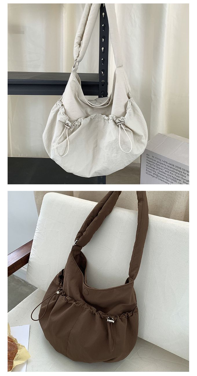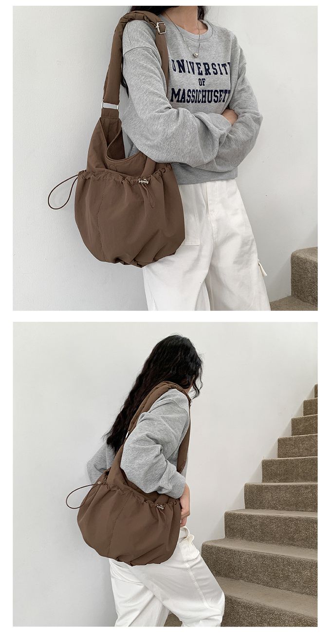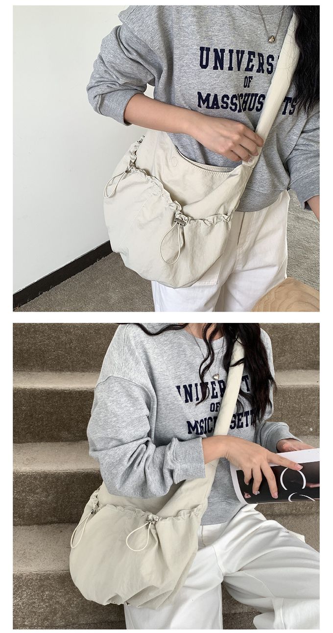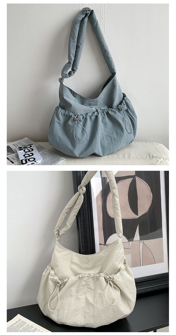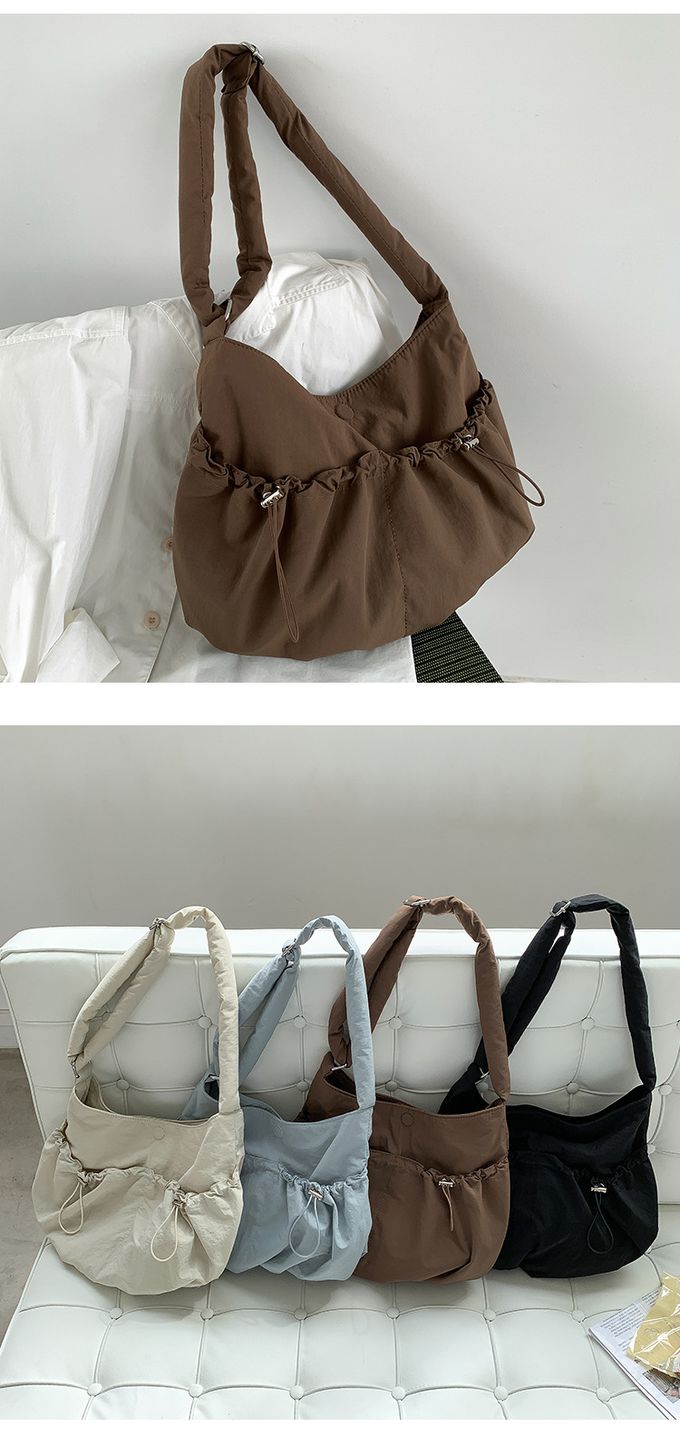 品名:大容量抽繩口袋尼龍單肩包/斜背包
