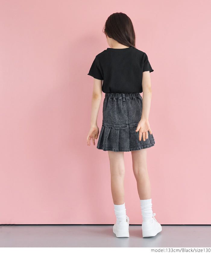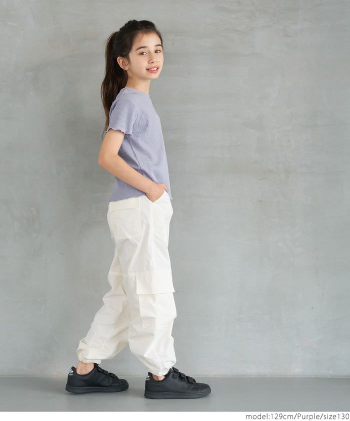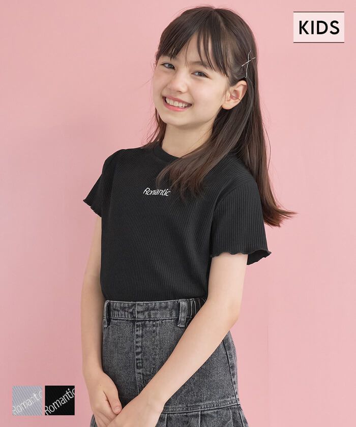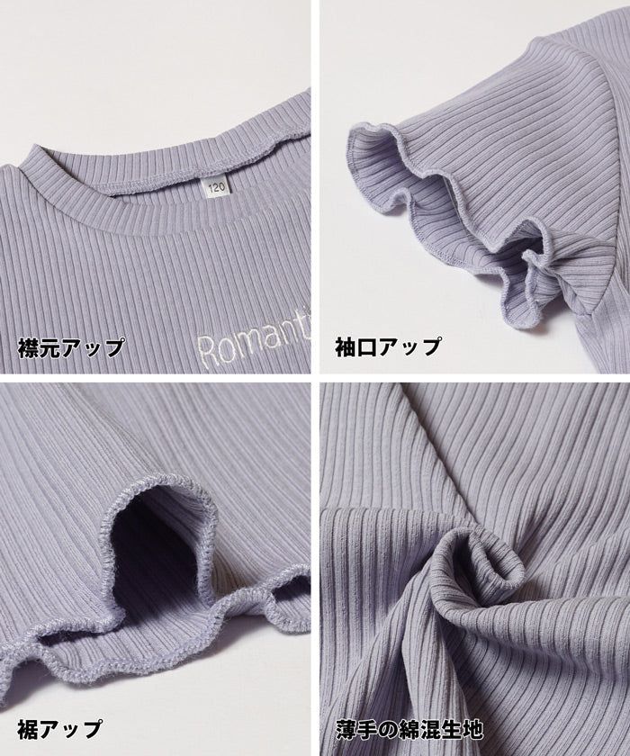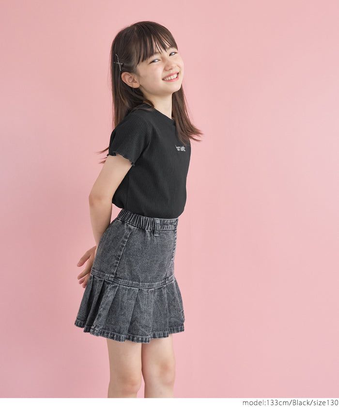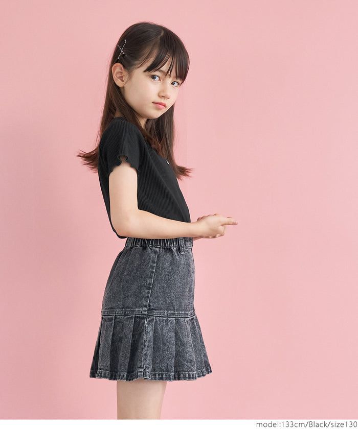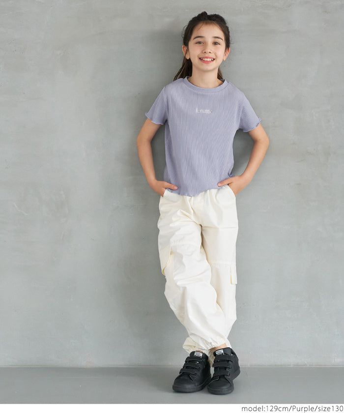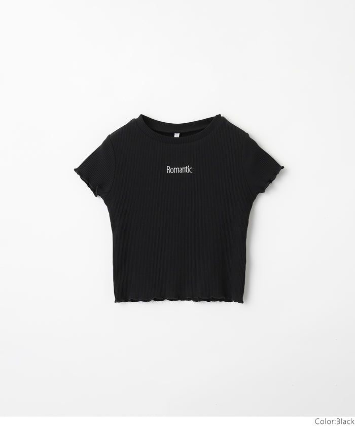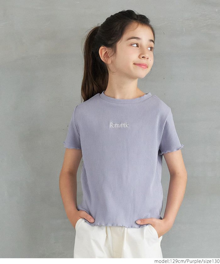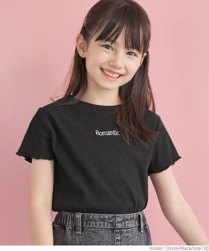[小孩]低調刺繡羅紋木耳短袖上衣