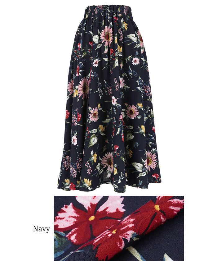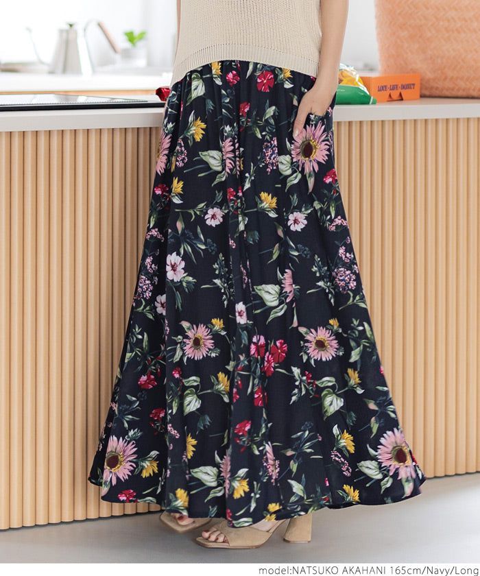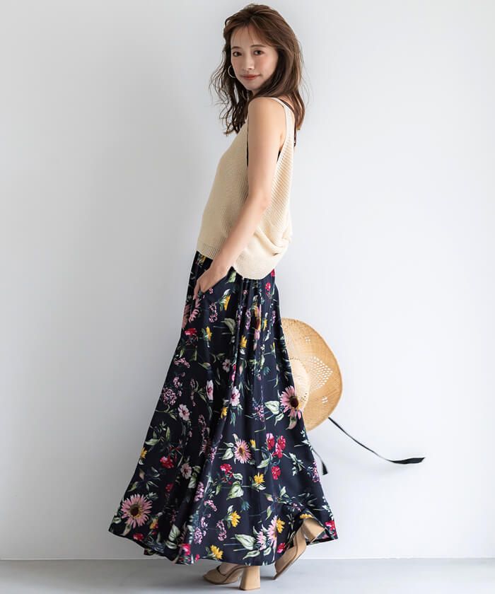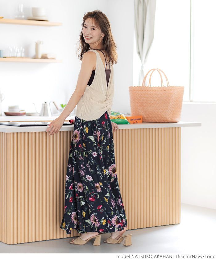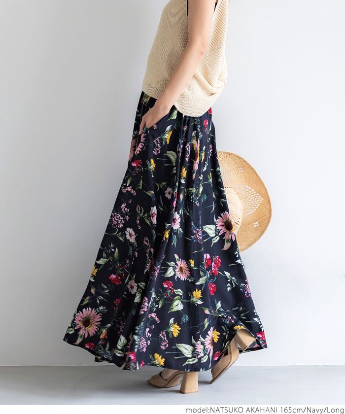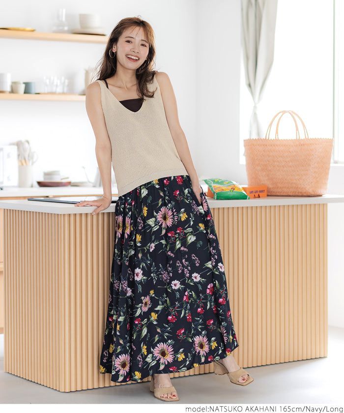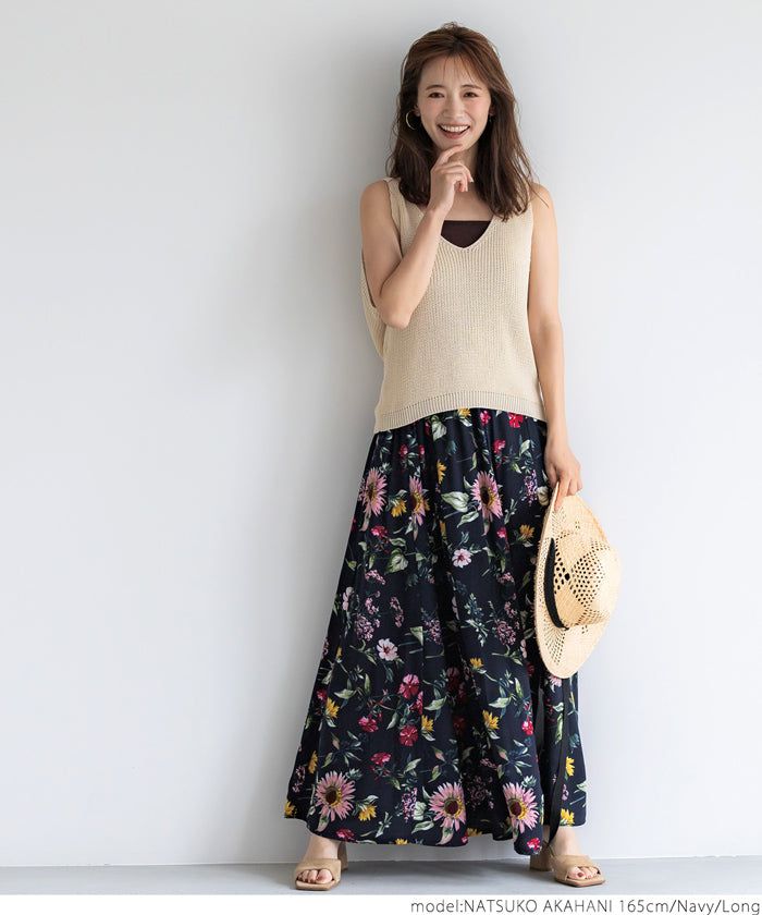 嫘縈度假感印花鬆緊長裙