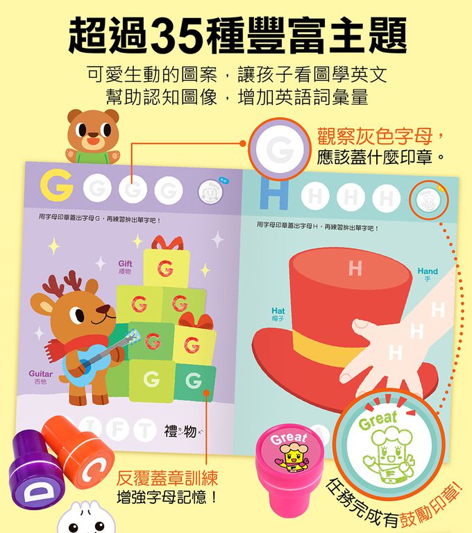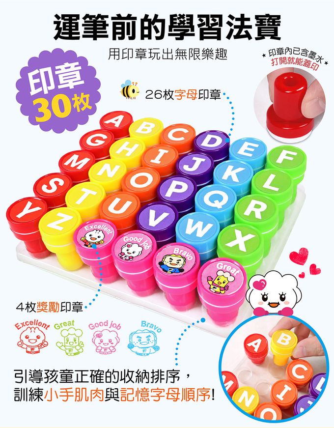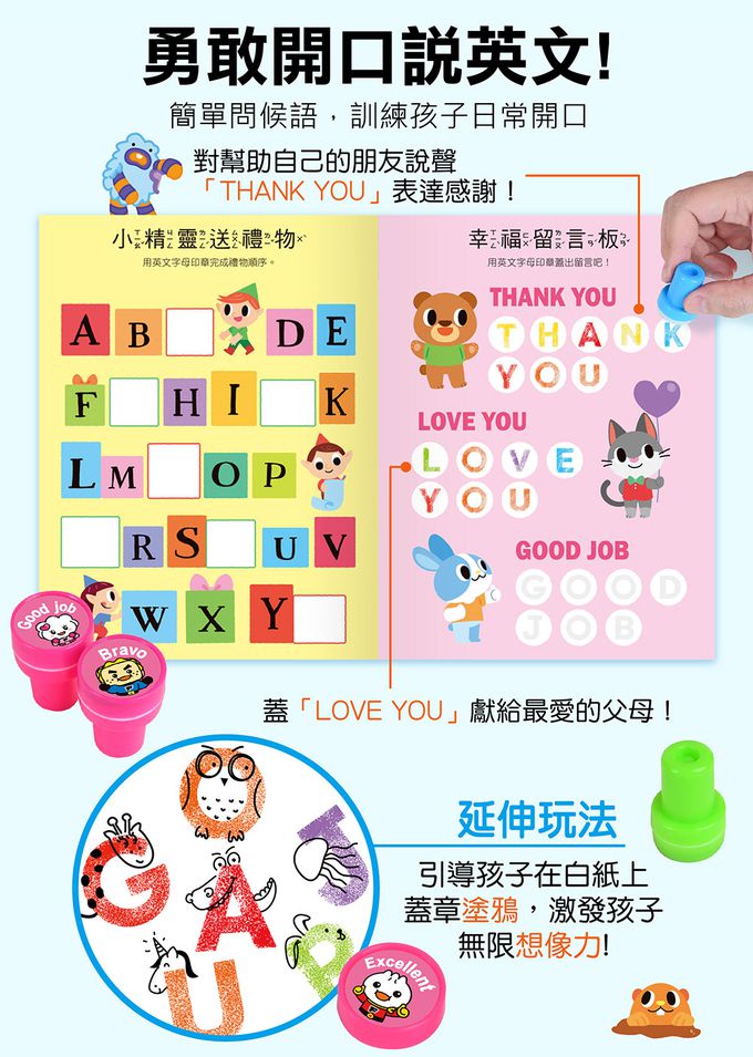 注意事項:4個獎勵印章+26個幾何圖形印章、1本印章書共40頁