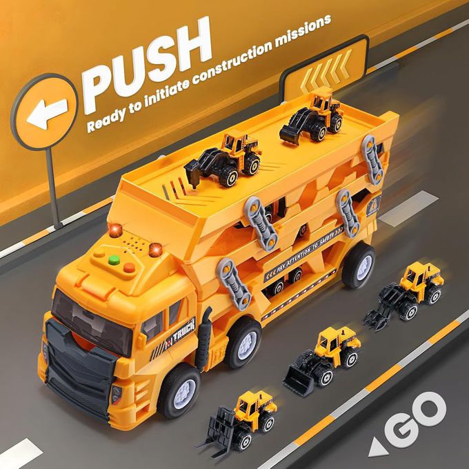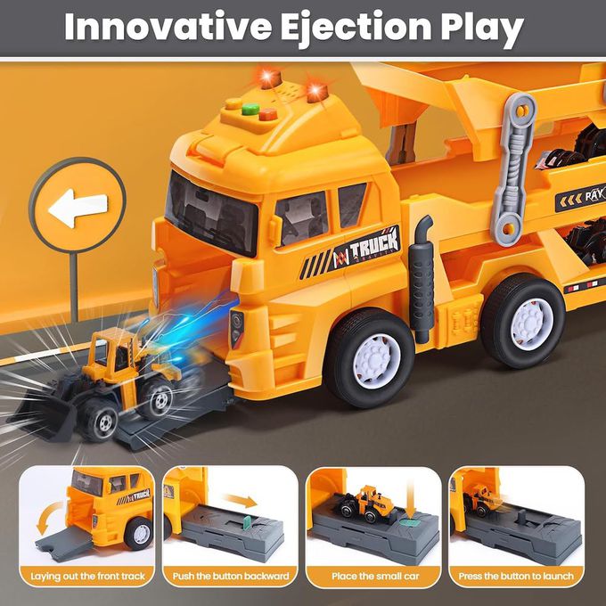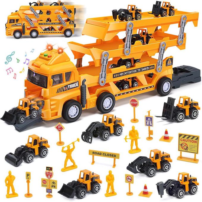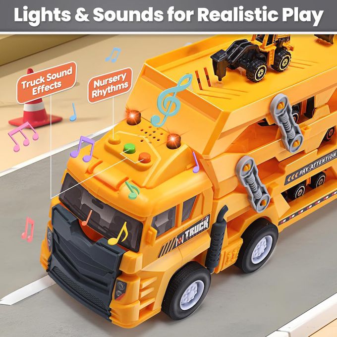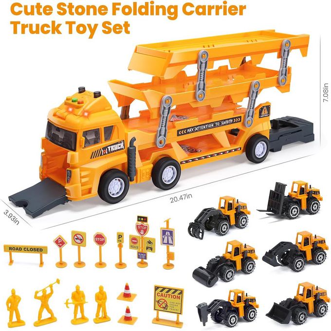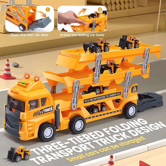 品名:兒童聲光卡車三層工程運輸車套裝玩具21件組