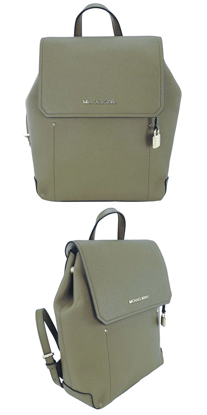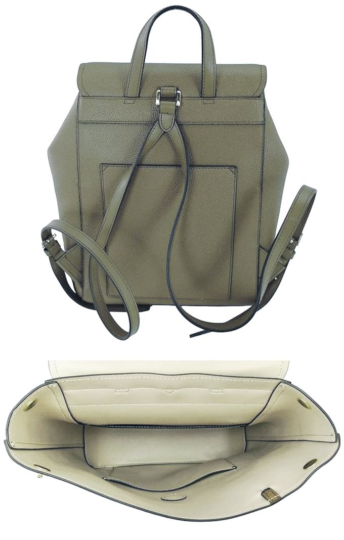 荔枝紋皮革翻蓋後背包 (橄欖綠)