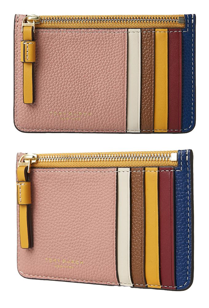 拼接皮革卡夾零錢包 (粉藍紅黃白)