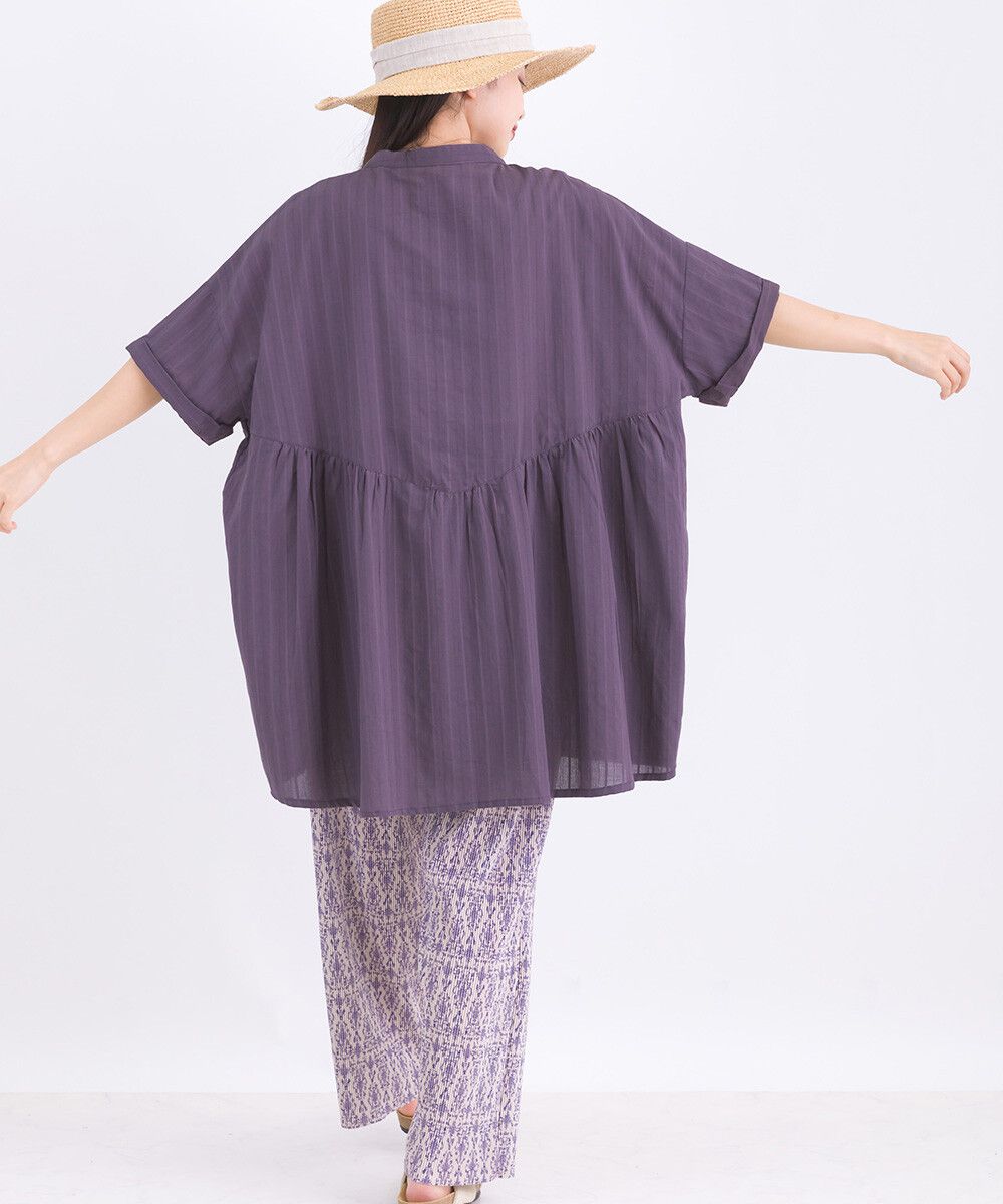印度棉 文青細直紋五分袖襯衫
