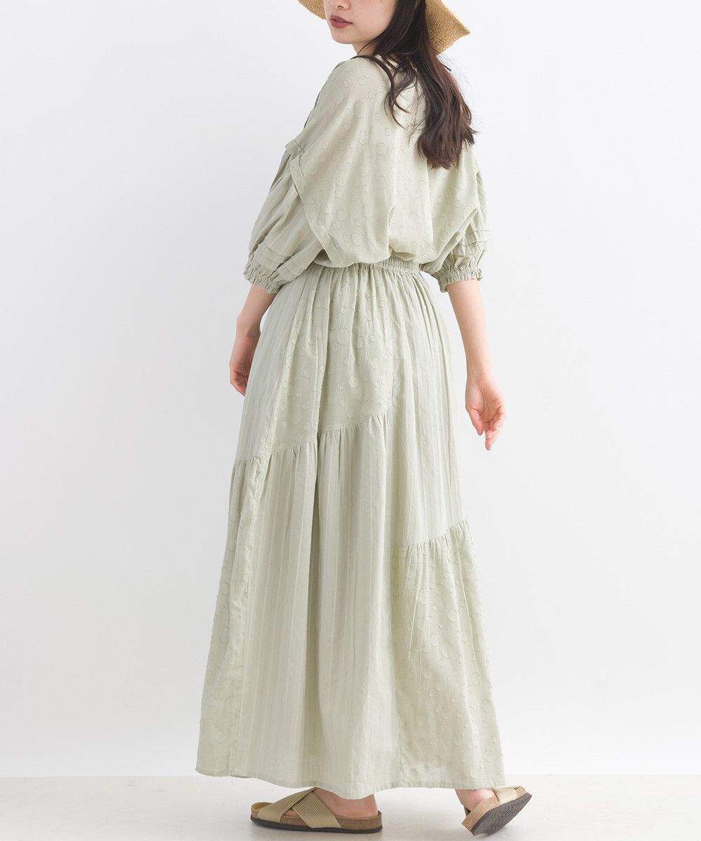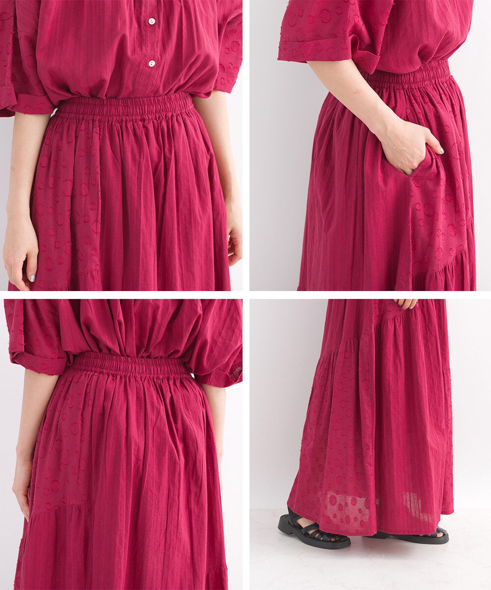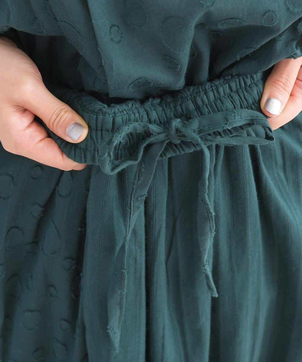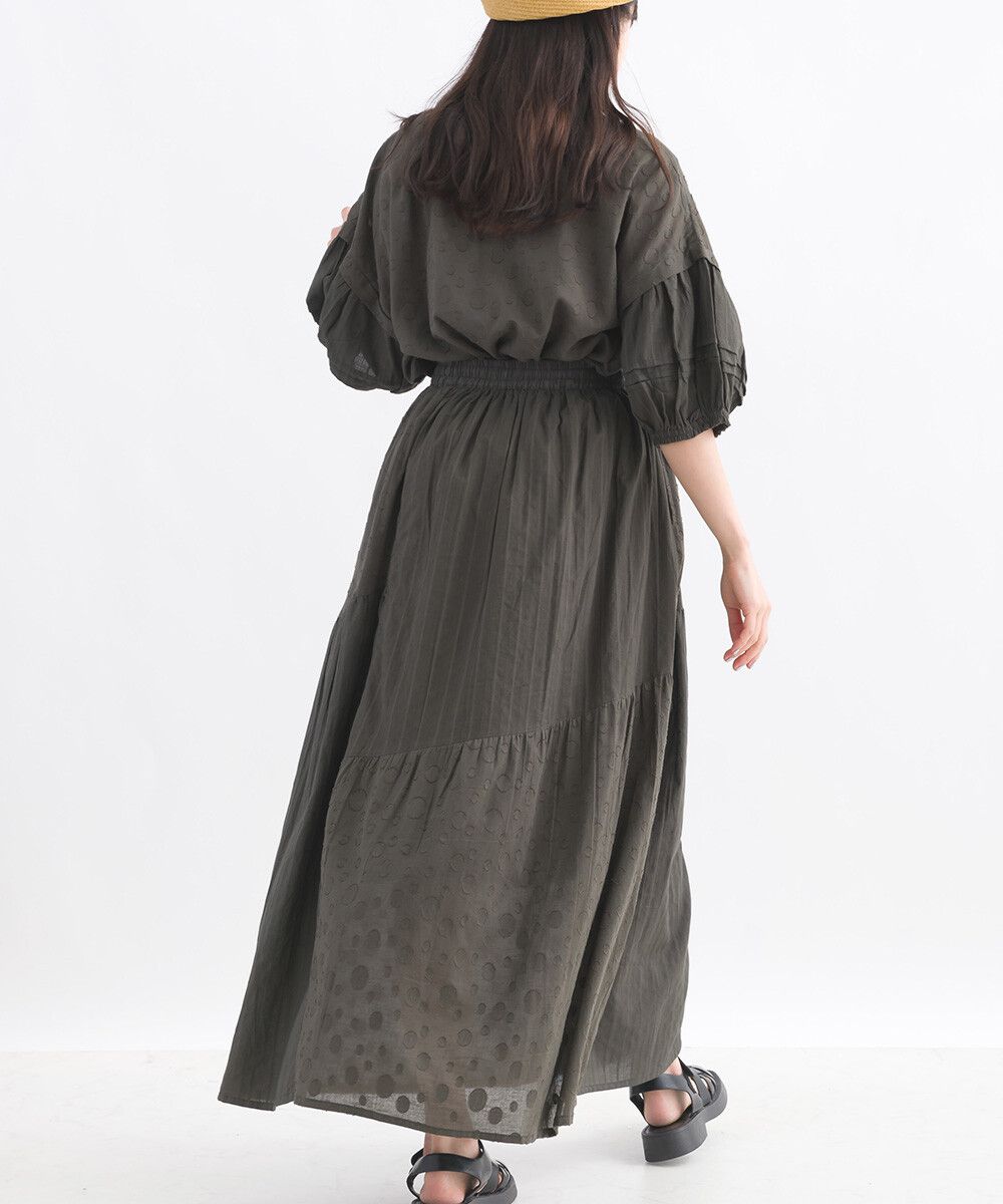 印度棉 圓點條紋緹花鬆緊長裙