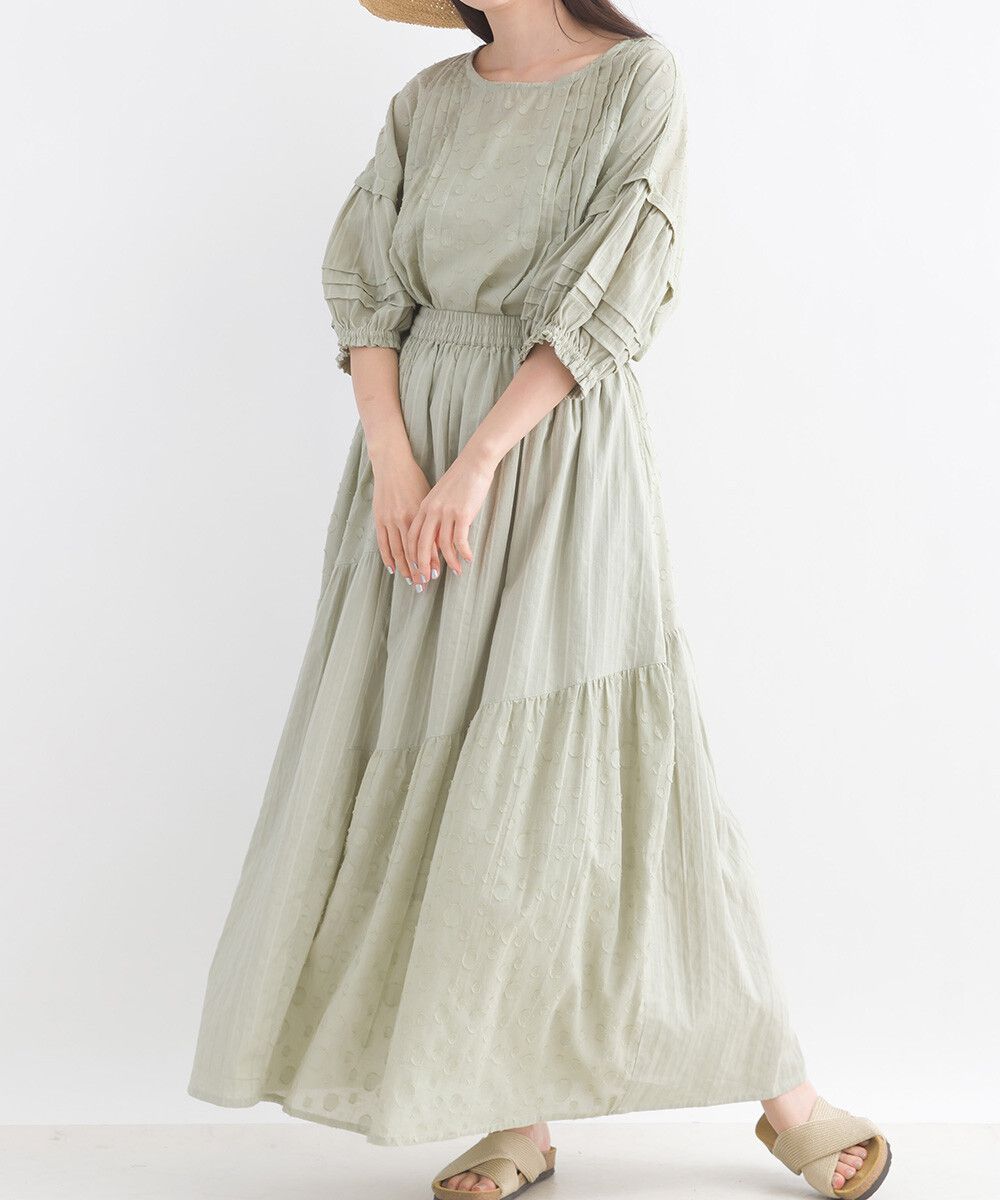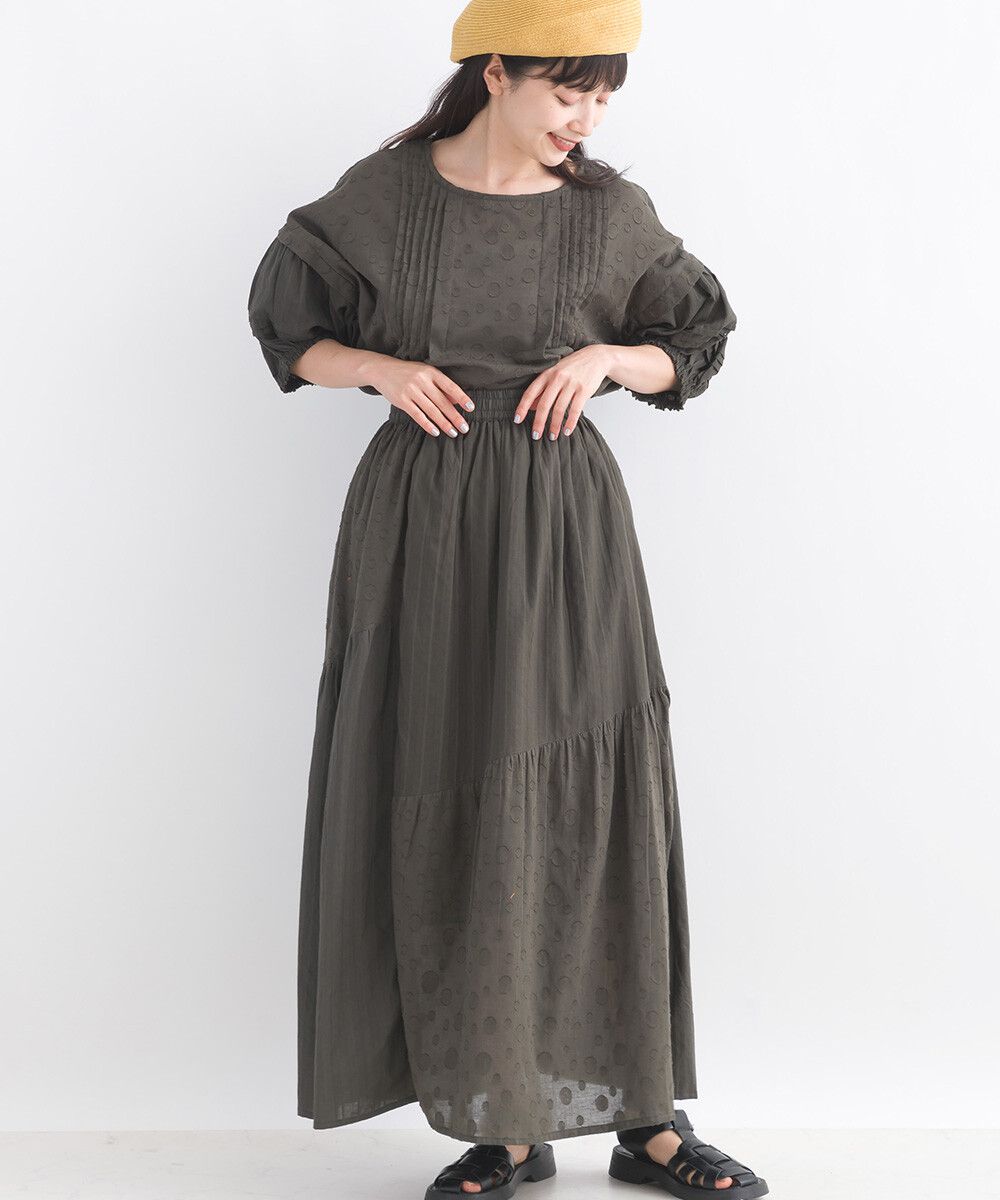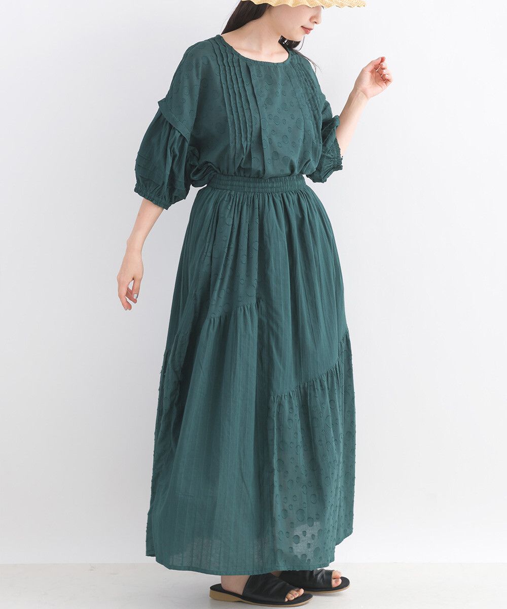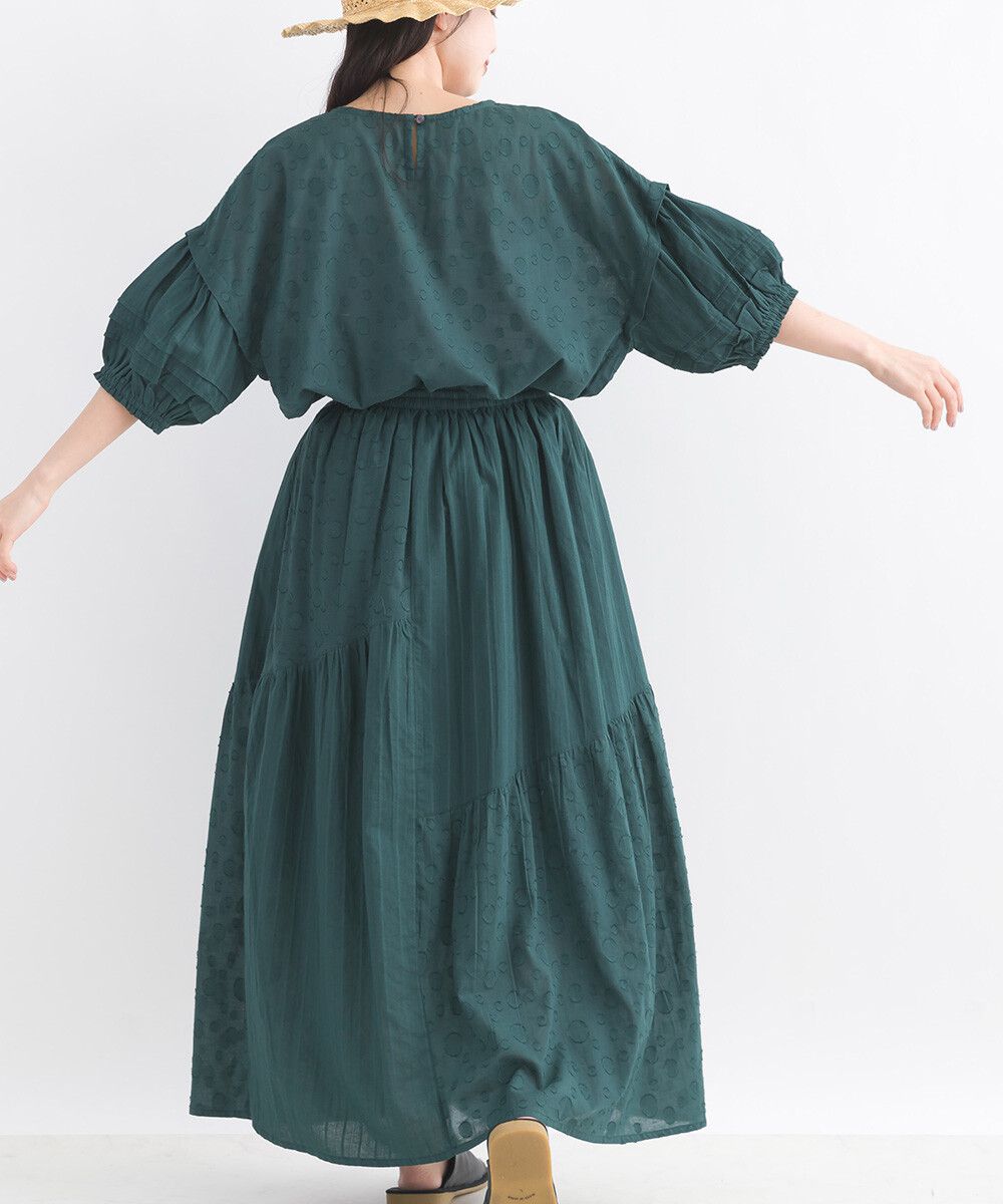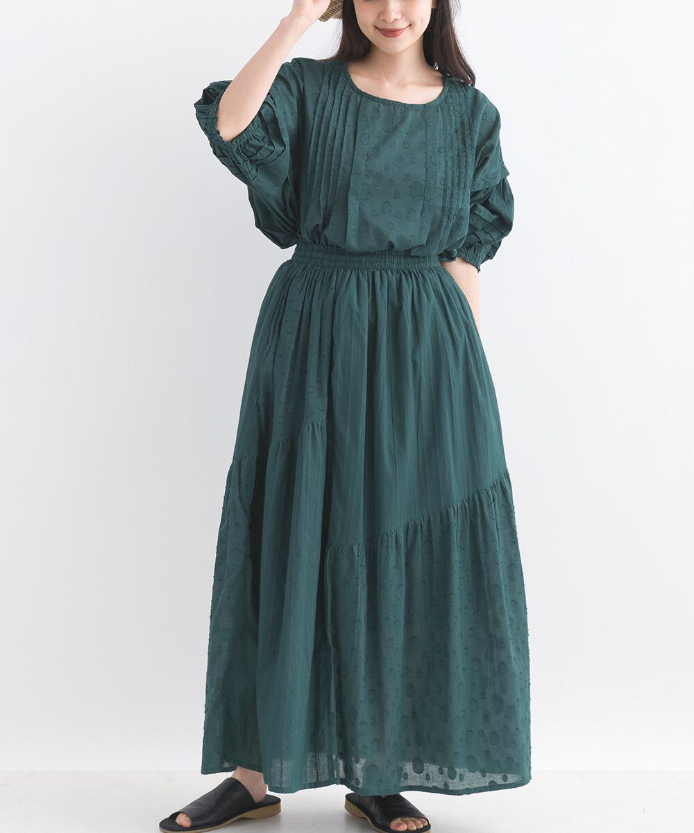 印度棉 圓點條紋緹花鬆緊長裙