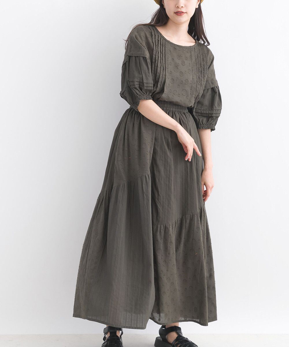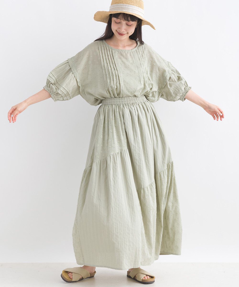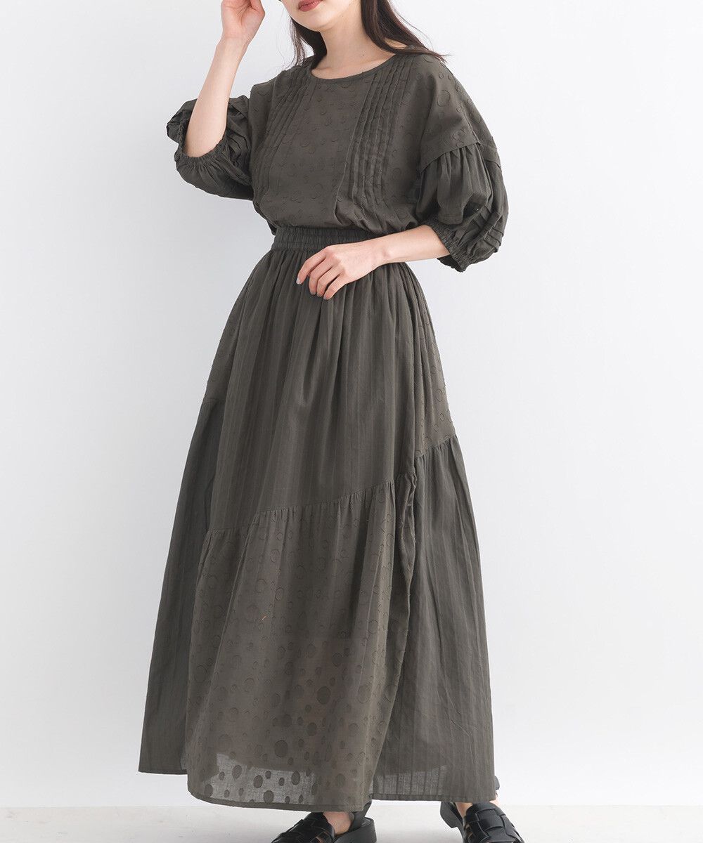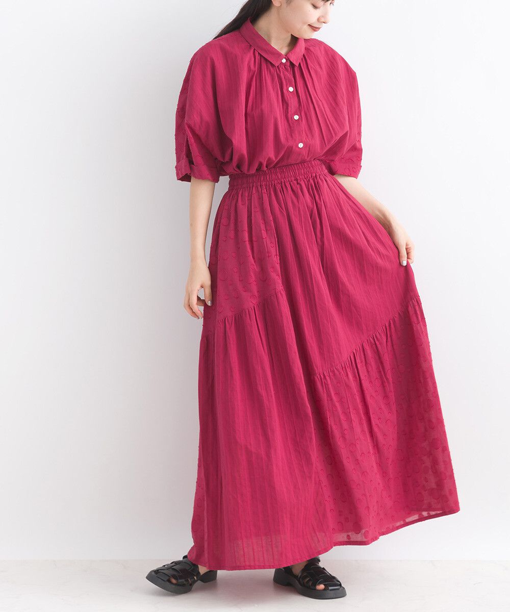 印度棉 圓點條紋緹花鬆緊長裙