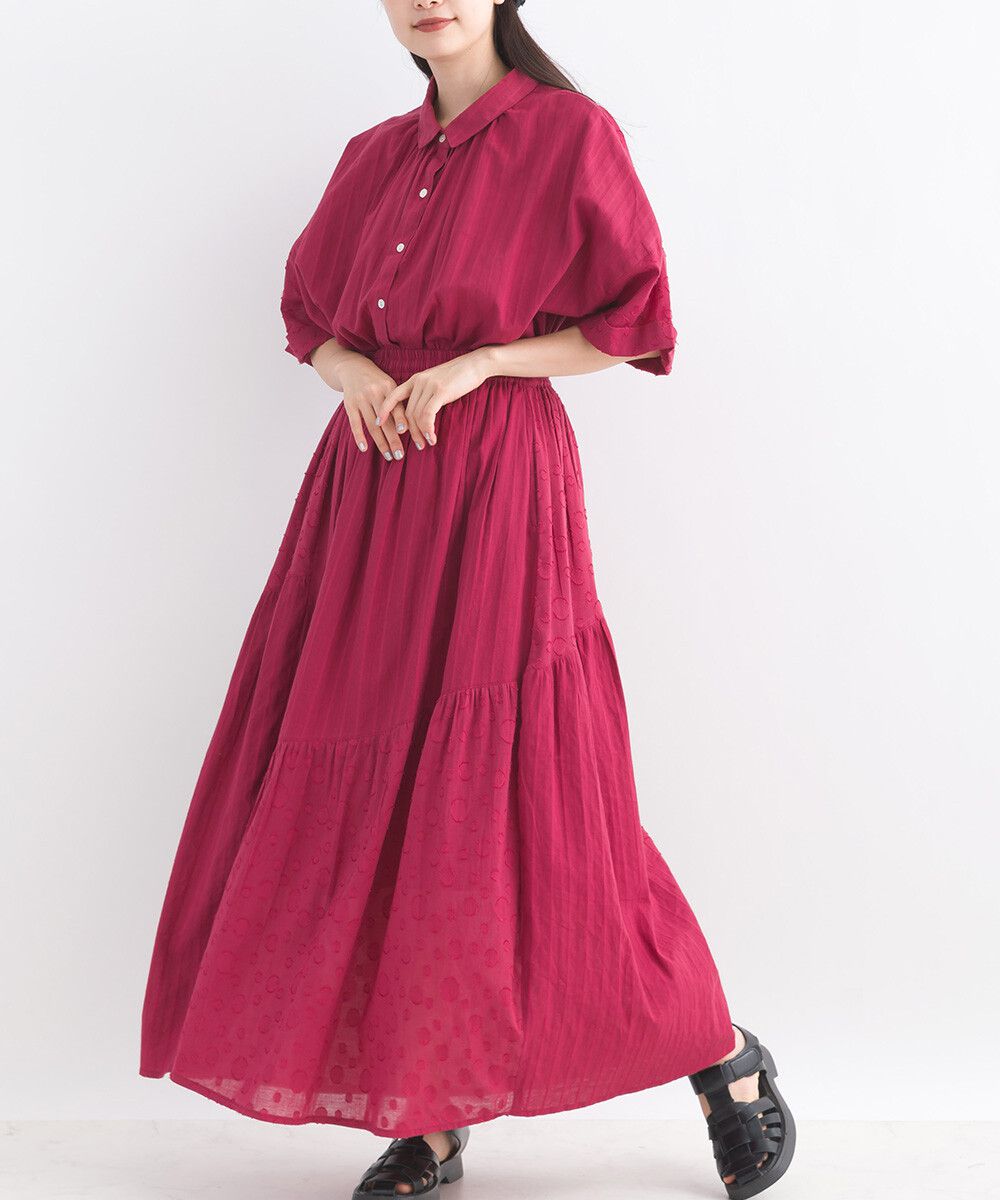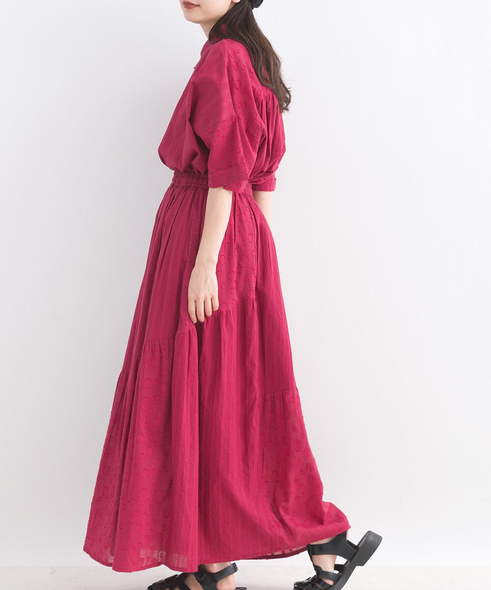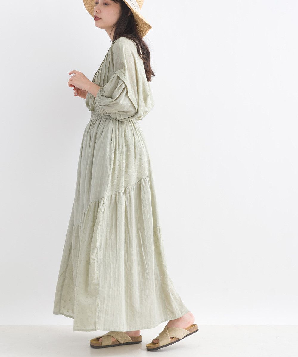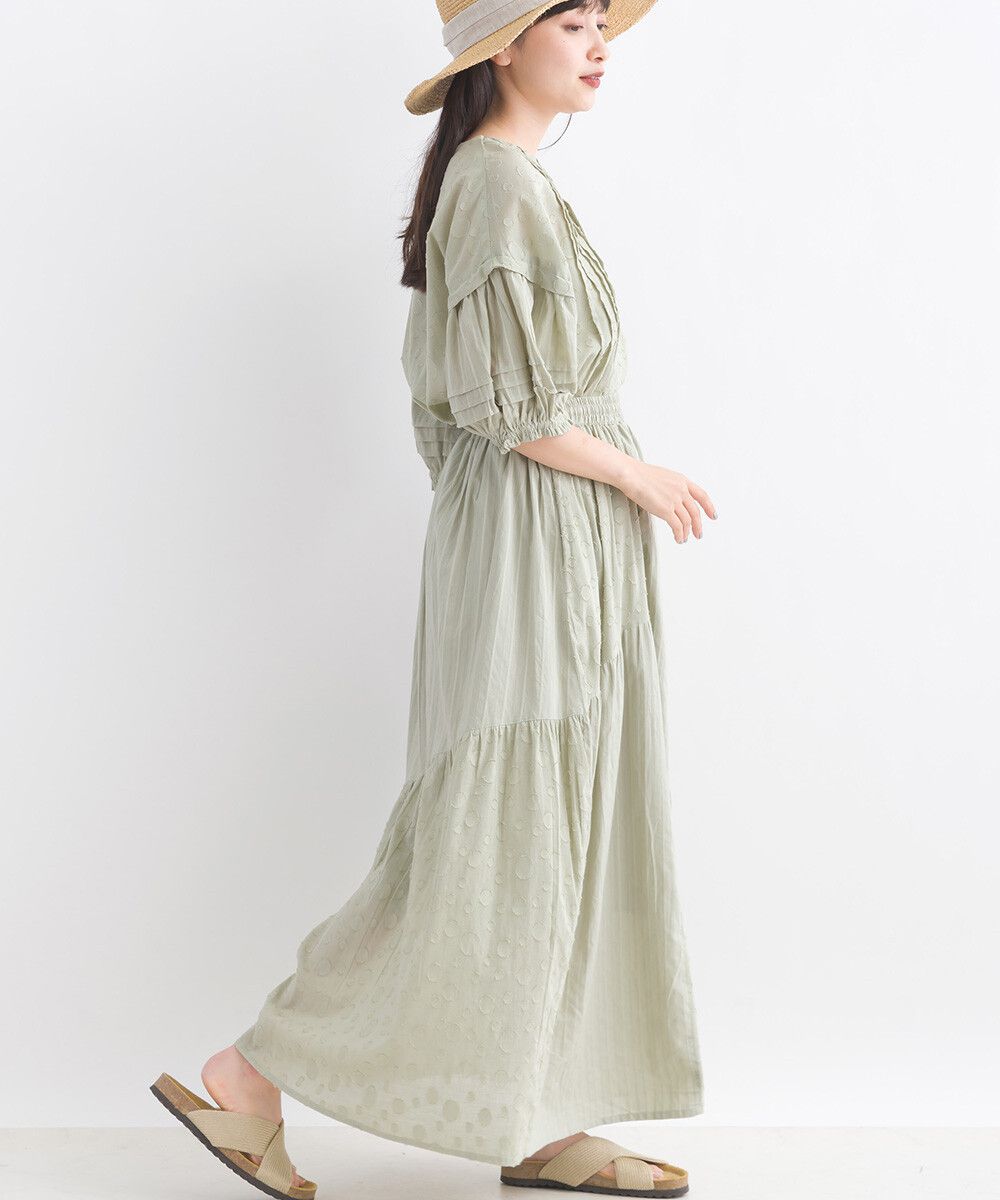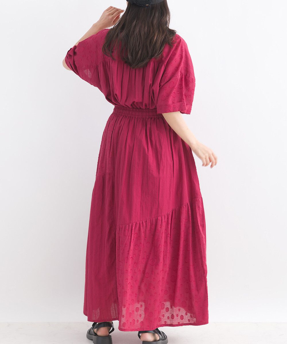 印度棉 圓點條紋緹花鬆緊長裙