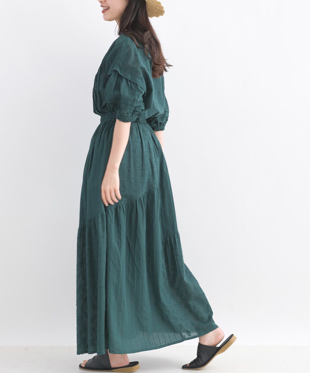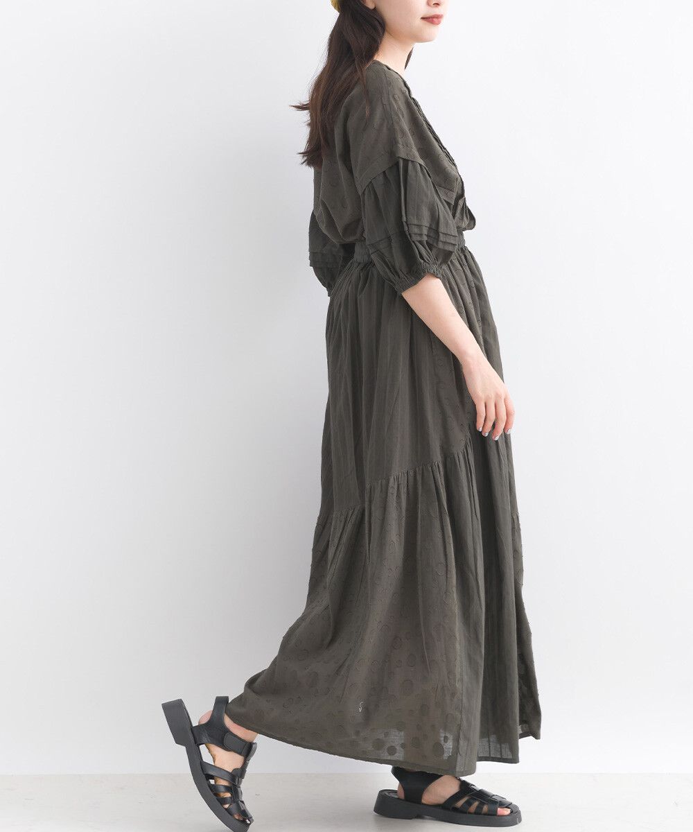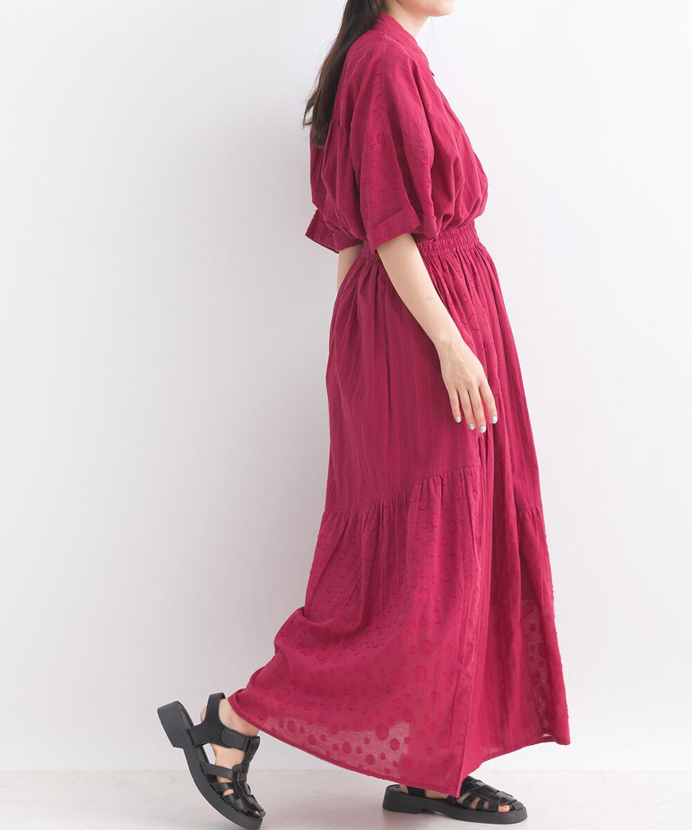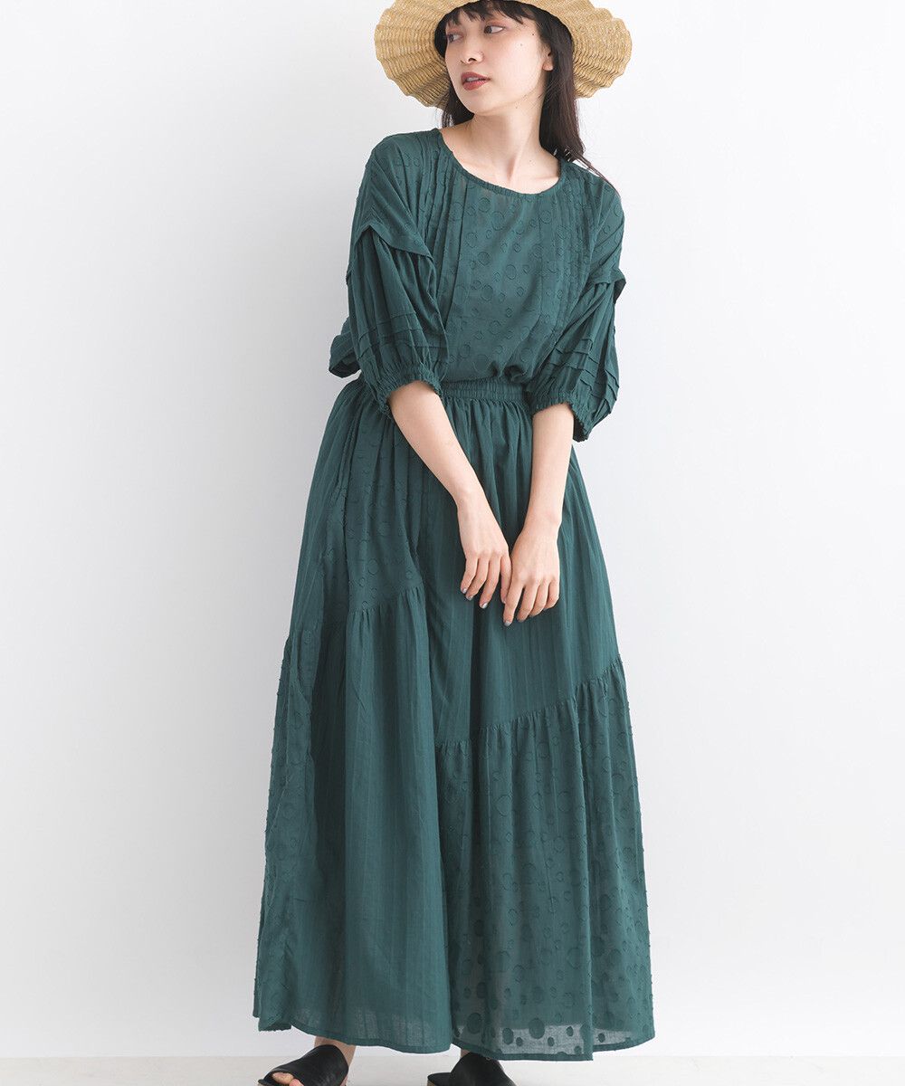 印度棉 圓點條紋緹花鬆緊長裙