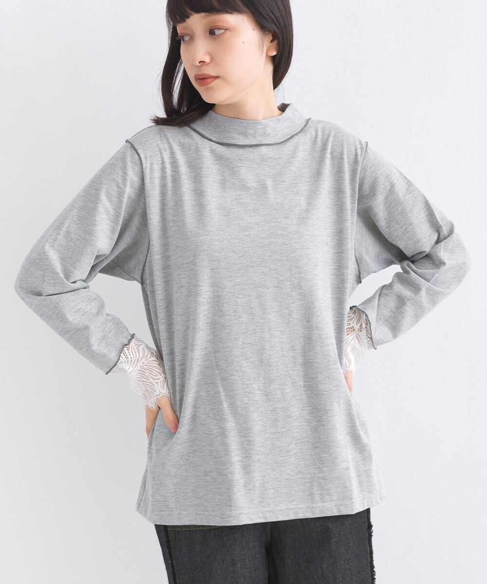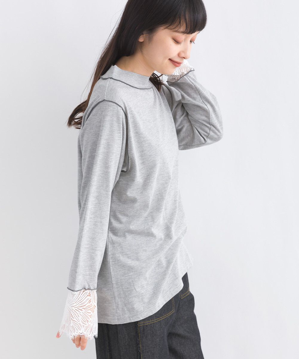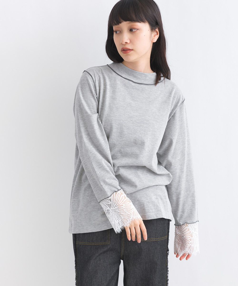 ![日本女裝代購 - 大寬袖圓領混色針織上衣-莓粉]()