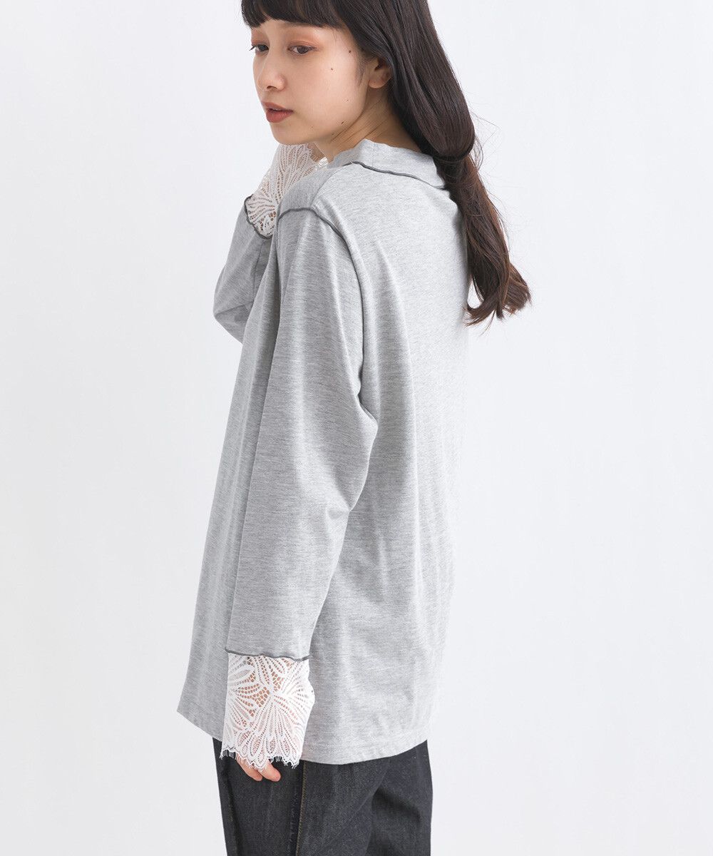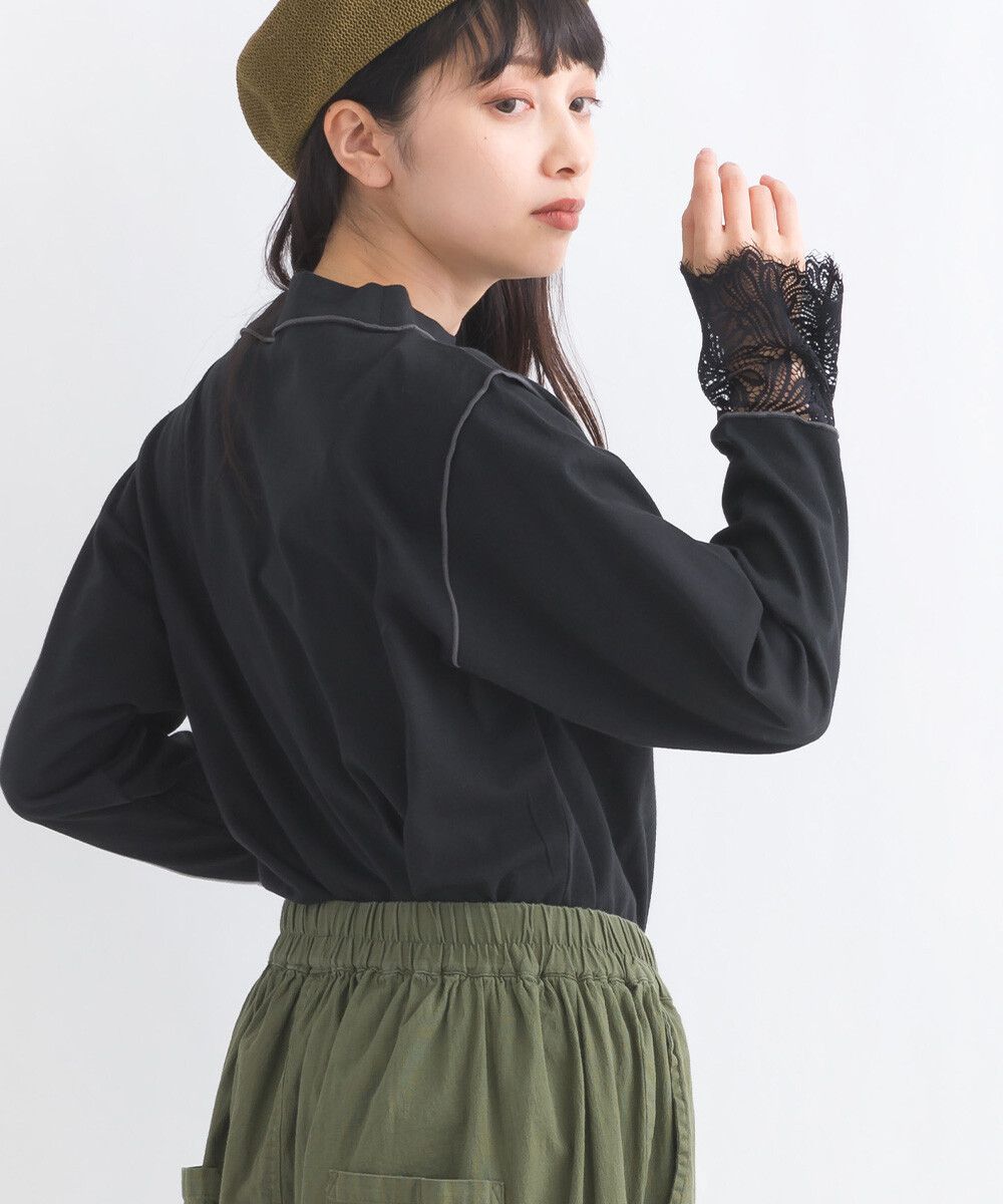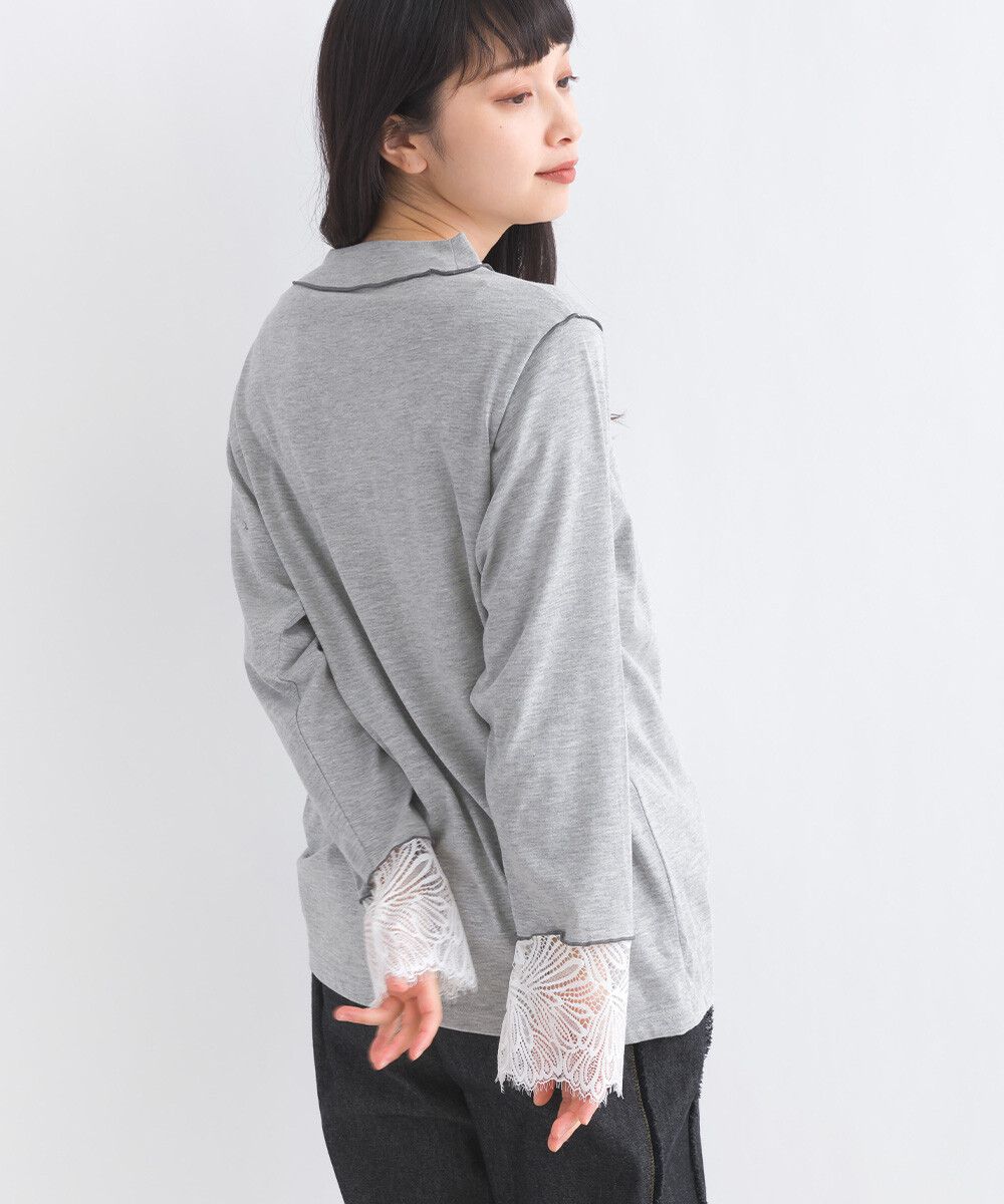 ![日本女裝代購 - 大寬袖圓領混色針織上衣-莓粉]()