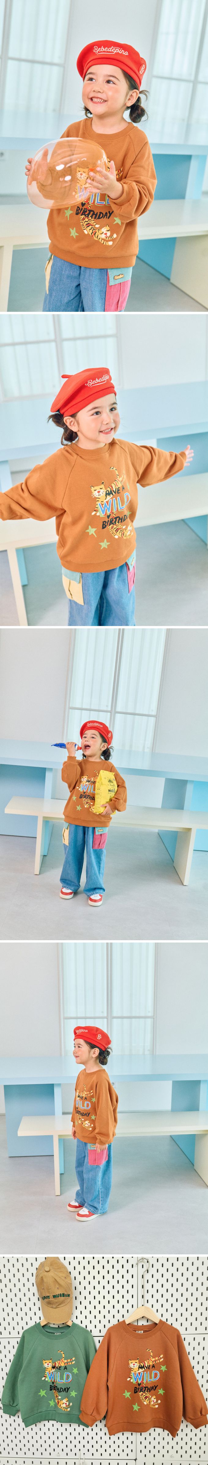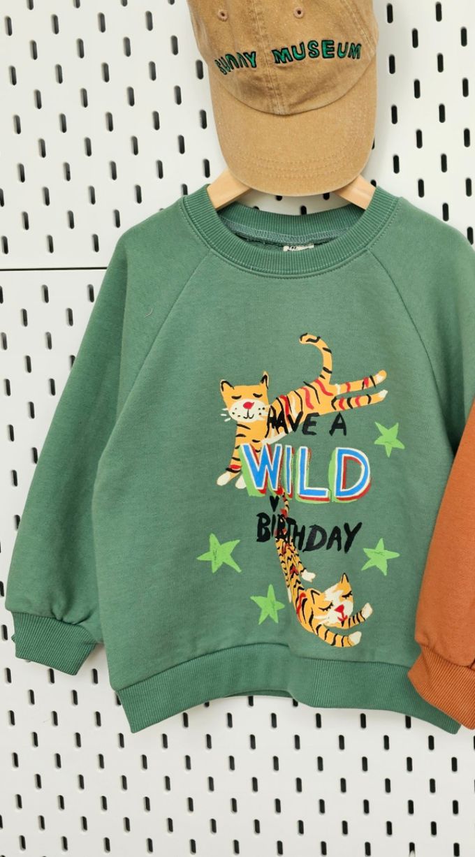 韓國 First Blue - 手繪老虎印長袖大學T-綠