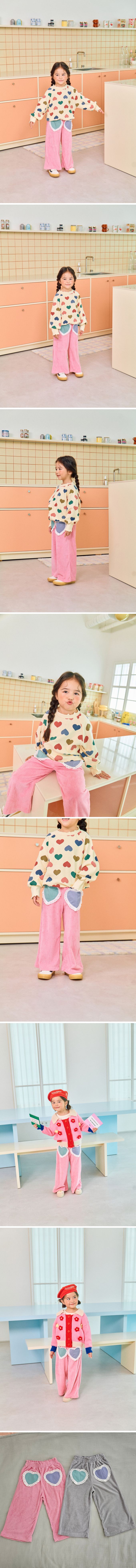 韓國 First Blue - 鬆緊腰蕾絲愛心點綴長褲-粉