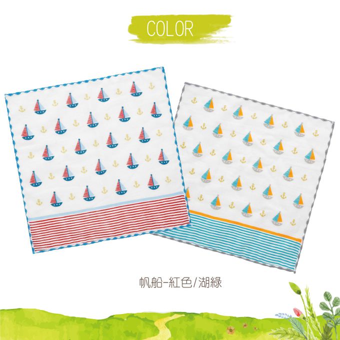 童話抗菌紗布小方巾-帆船-紅色+綠色 (26x26cm)-6入組