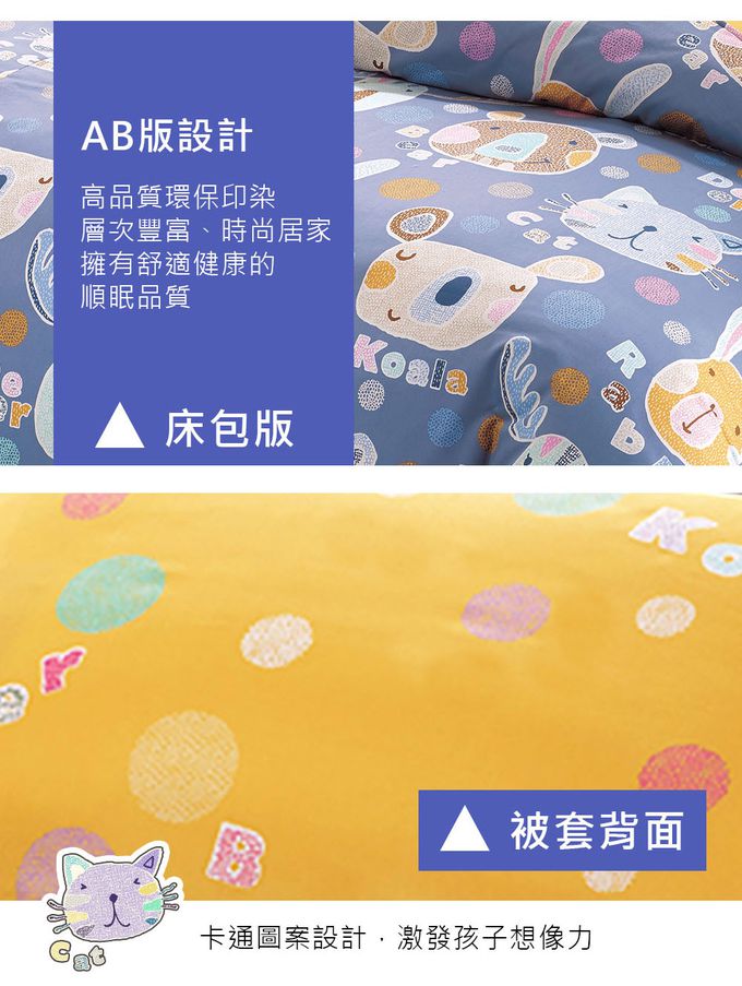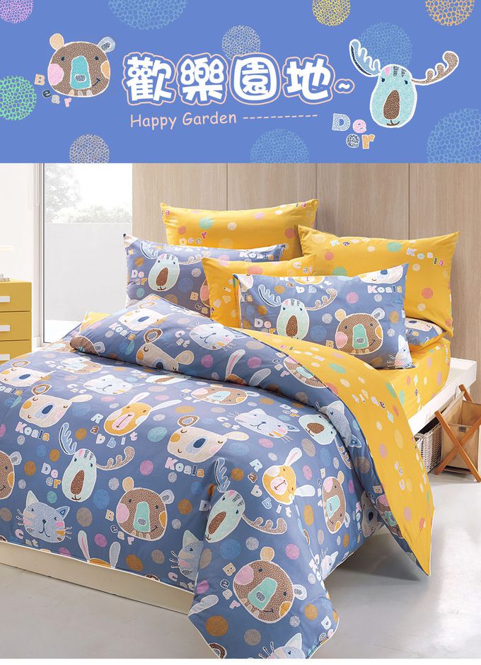 單人薄被套5x7 防蹣抗菌100%美國棉-歡樂園地-藍