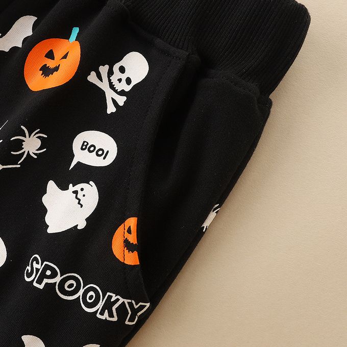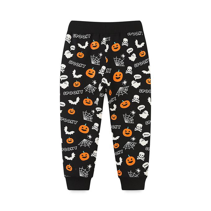 [萬聖節]純棉腰鬆緊休閒束口長褲-南瓜幽靈-黑色