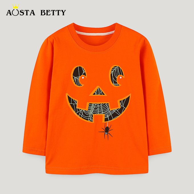 重點!看似簡約的橘色南瓜圖案T-shirt,竟然隱藏著小秘密⋯那就是南瓜五官裡的蜘蛛絲竟然有螢光!!!